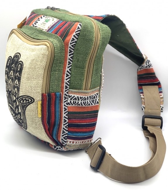 • At Himalaya Handmade we are known for creating the modern Mini Sling hemp backpacks that are now available in profusion of design and colors. Our Mini backpack with multicolor Aztec pattern is made from eco-friendly natural hand-woven hemp and cotton fabric and it is beautifully handcrafted in Nepal, they are high quality and this backpack has everything you need. You will not find higher quality anywhere else. All of our bags are sourced from the mountainous regions of Nepal and are all 100% Handmade. This backpack features are it has a unique multi colored pocket. Handcrafted this Backpack Includes, tablet compartment – fits up to large tablet, 3 separate compartments with 2 pockets being zippered, extremely strong construction, strong original two metal zippers on main compartment, soft padded straps and made from 100% Hemp, the entire bag is extremely strong but also breathable. Color of these bag will not be exact because arrangement of the pattern and these bags are handmade so in color can be slightly different. The image for display is just one of many designs that are available. Every bag is handmade and therefore unique.