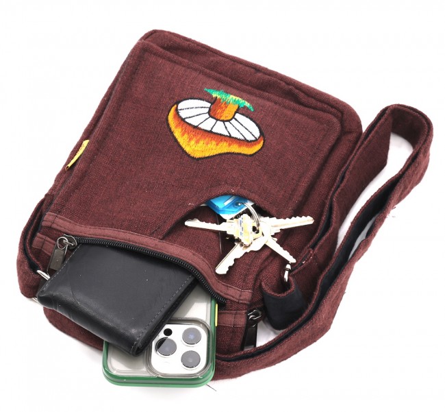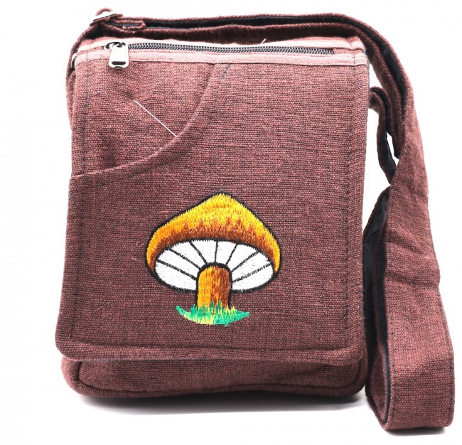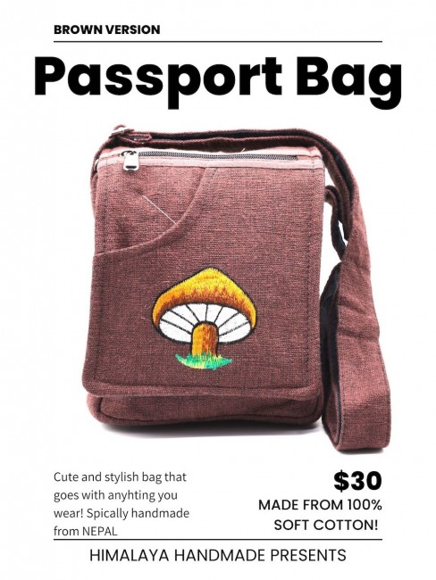 This beautiful Mushroom embroidered 100% pure cotton passport bags are handmade in Nepal. This beautiful passport bag features are it has one pocket in the front & one pocket in the back, it has two compartments, a large main compartment with zippered pocket inside and it has a long adjustable strap 11”-24” inch which you can clutch the bag across your body. This cotton passport bag is extraordinary and fashionable. This passport bag is suitable for carrying document, Mini Tablet, Mobile Phone and Purses.