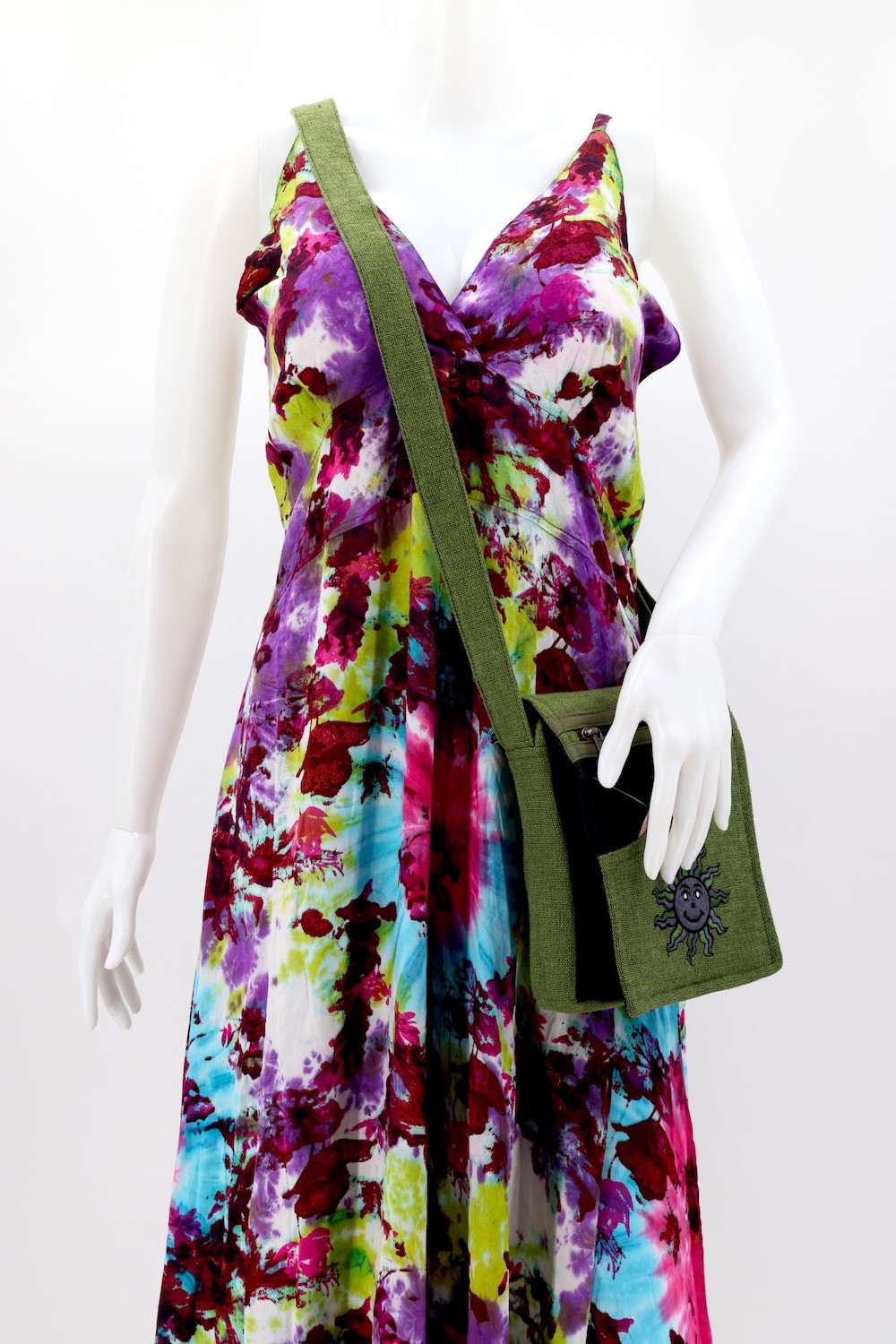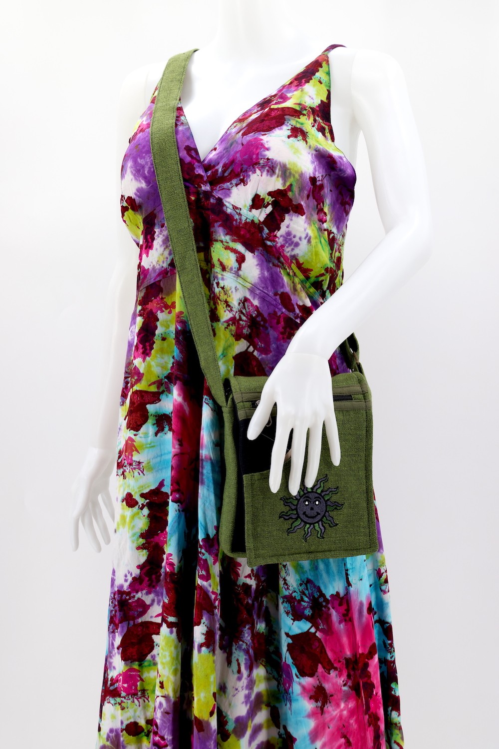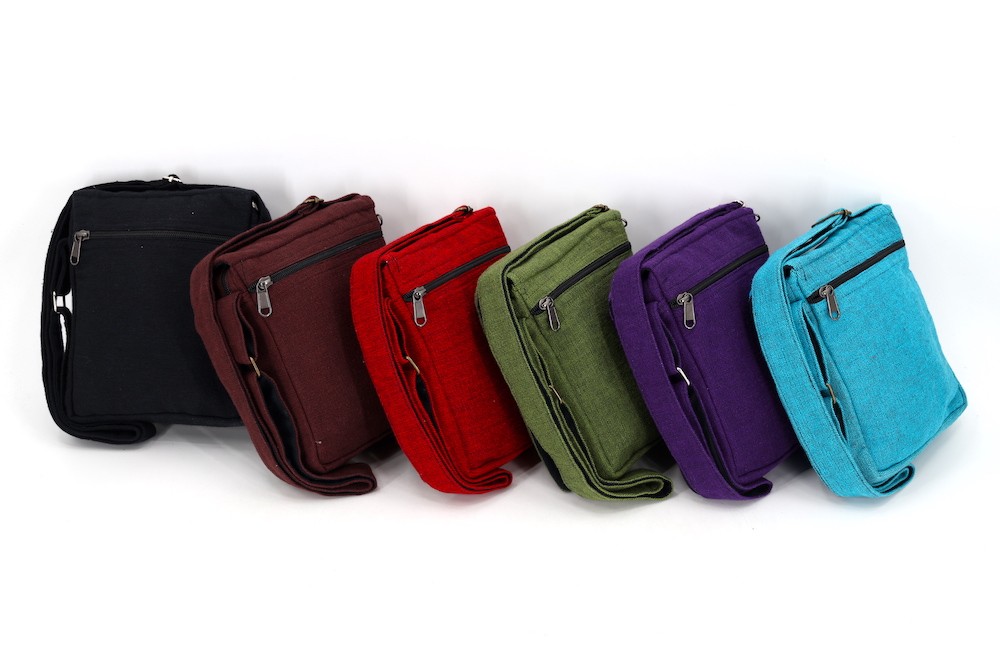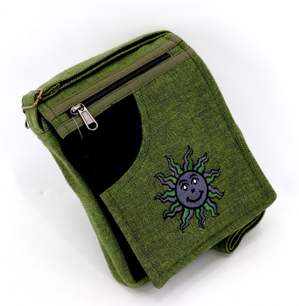 The beautiful Hand-Woven Cotton Travel bag is hand made in Nepal with pure 100% organic Himalaya Cotton. This modern Mushroom Embroidery Cotton passport bag is supremely versatile and fashionable. This bag features are it has two compartments with zippers and it has adjustable strap with outside two pockets in the front and in the main pocket above with a zipper. It is a fair trade made product.