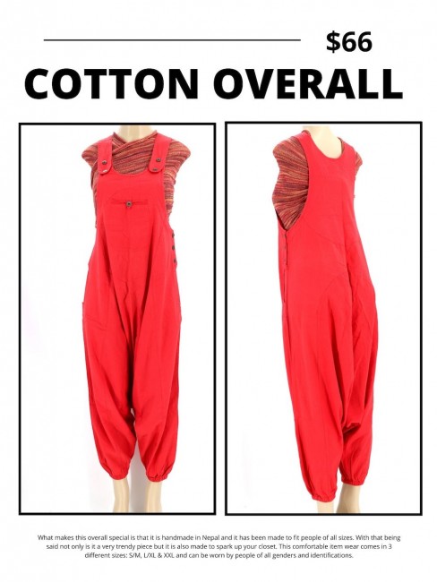 What makes this overall special is that it is handmade in Nepal and it has been made to fit people of all sizes. With that being said not only is it a very trendy piece but it is also made to spark up your closet. This comfortable item wear comes in 3 different sizes: S/M, L/XL & XXL and can be worn by people of all genders and identifications.