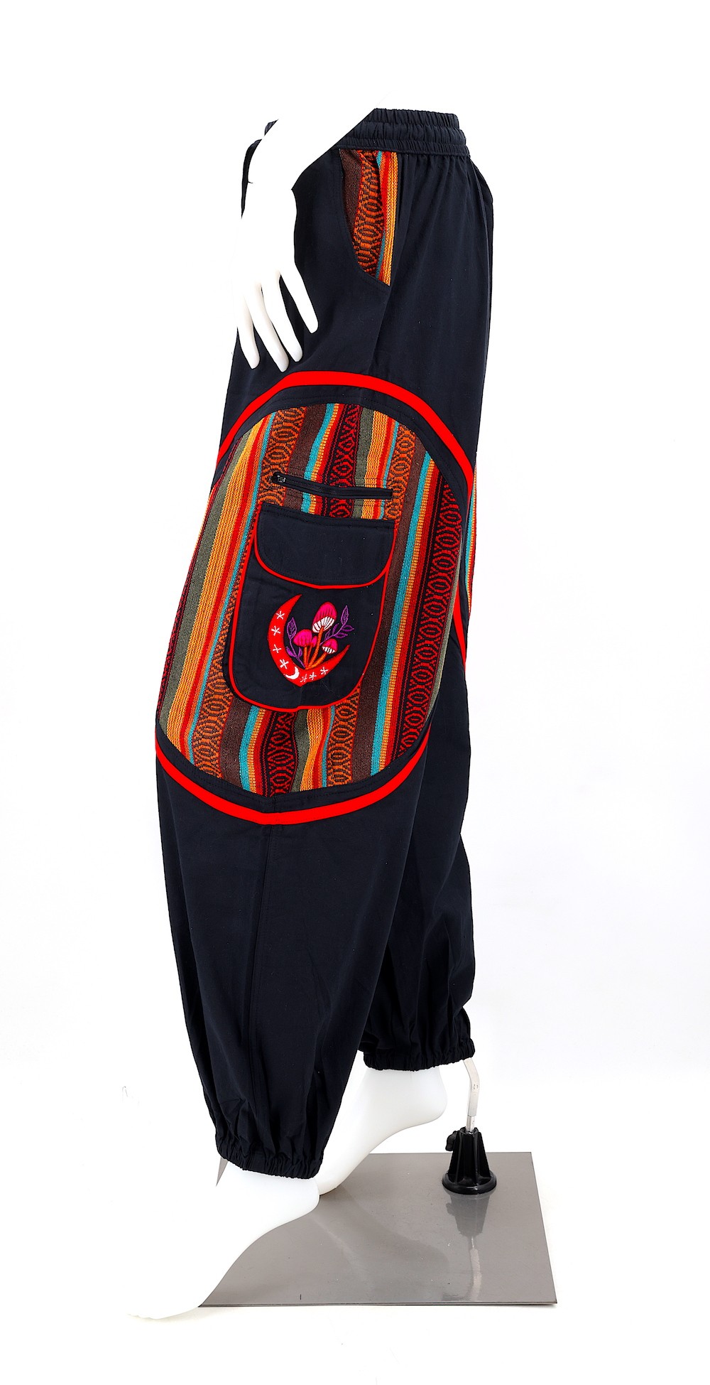 These unique Hippie Solid Color Moon Mushroom Embroidered Plain Gheri mix Pants are crafted from the finest 100% Natural Handwoven Cotton by some of the most skilled artisans. Elevate your style instantly with these extraordinary and highly fashionable Patchwork Pants that are suitable for almost any occasion, ensuring you look your best every single time.