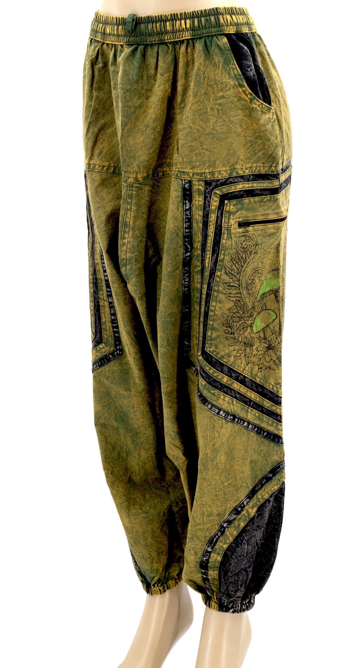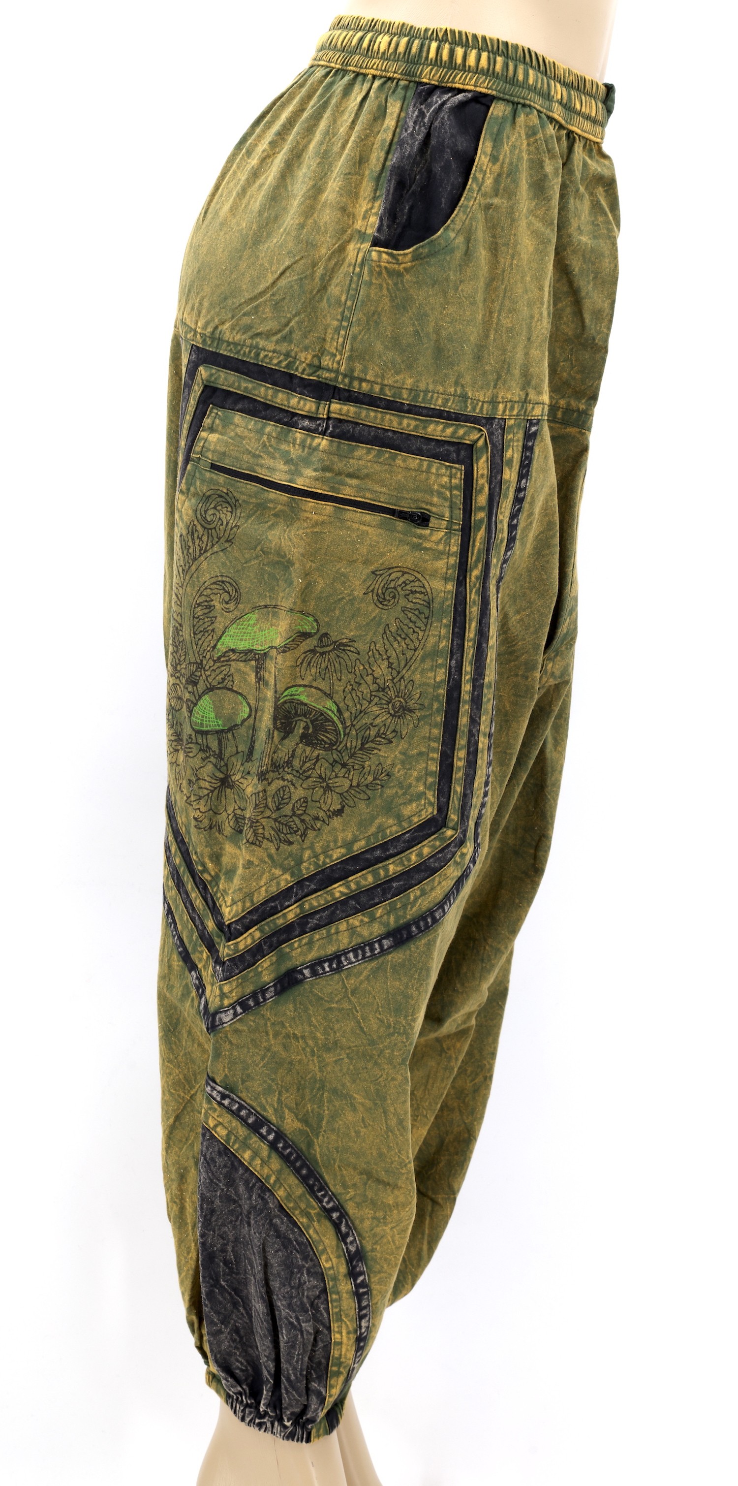 What makes the fine cotton Trouser with Mushroom Embroidery special is that it is handmade in Nepal and made to fit people of all sizes. With that being said not only is it a very trendy piece but it is also made to spark up your closet. This comfortable to wear item comes in 3 sizes: S/M, L/XL & XXL and can be worn by people of all gender and identification.