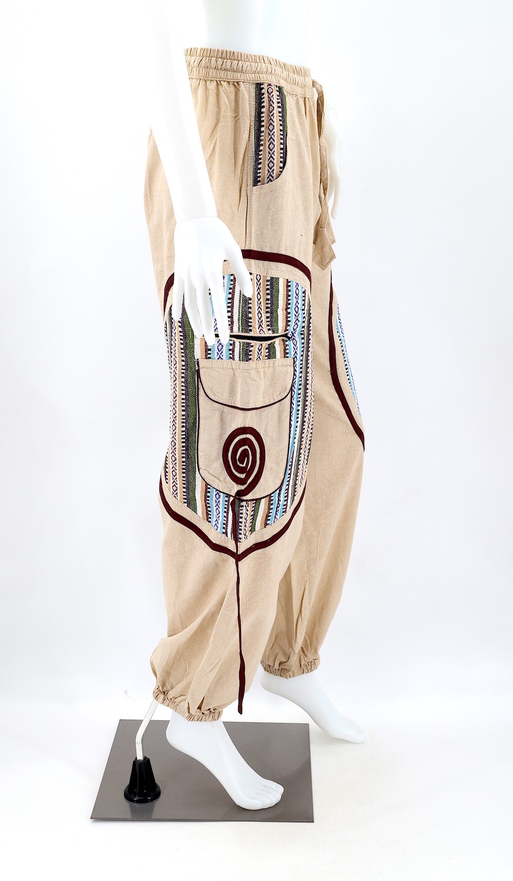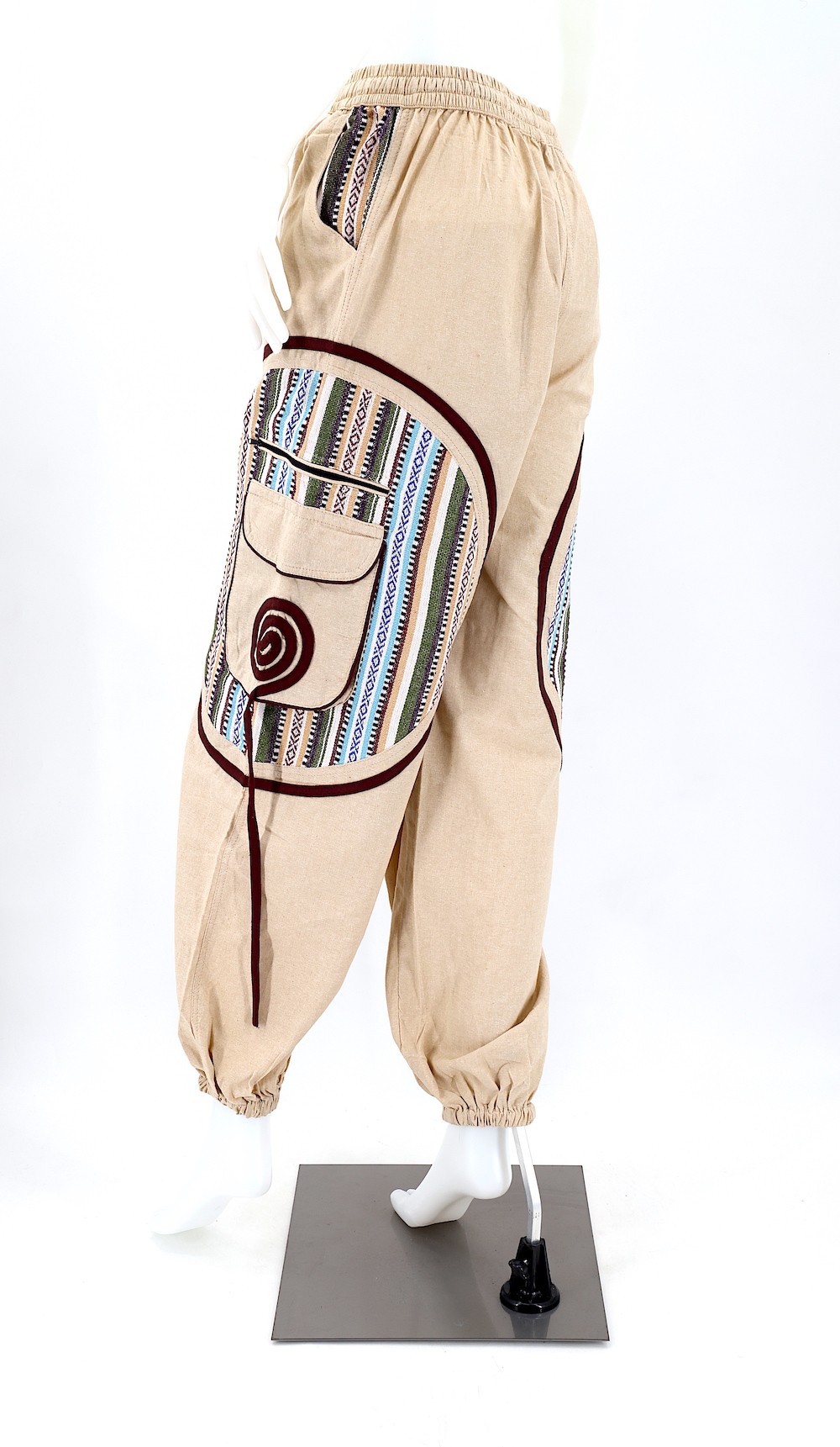 Handmade in the Himalayas, these pants are crafted from authentic 100% pure handwoven cotton, ensuring a genuine and sustainable product. We are committed to fair trade practices throughout the manufacturing and sale of this item, which is imported from Nepal.