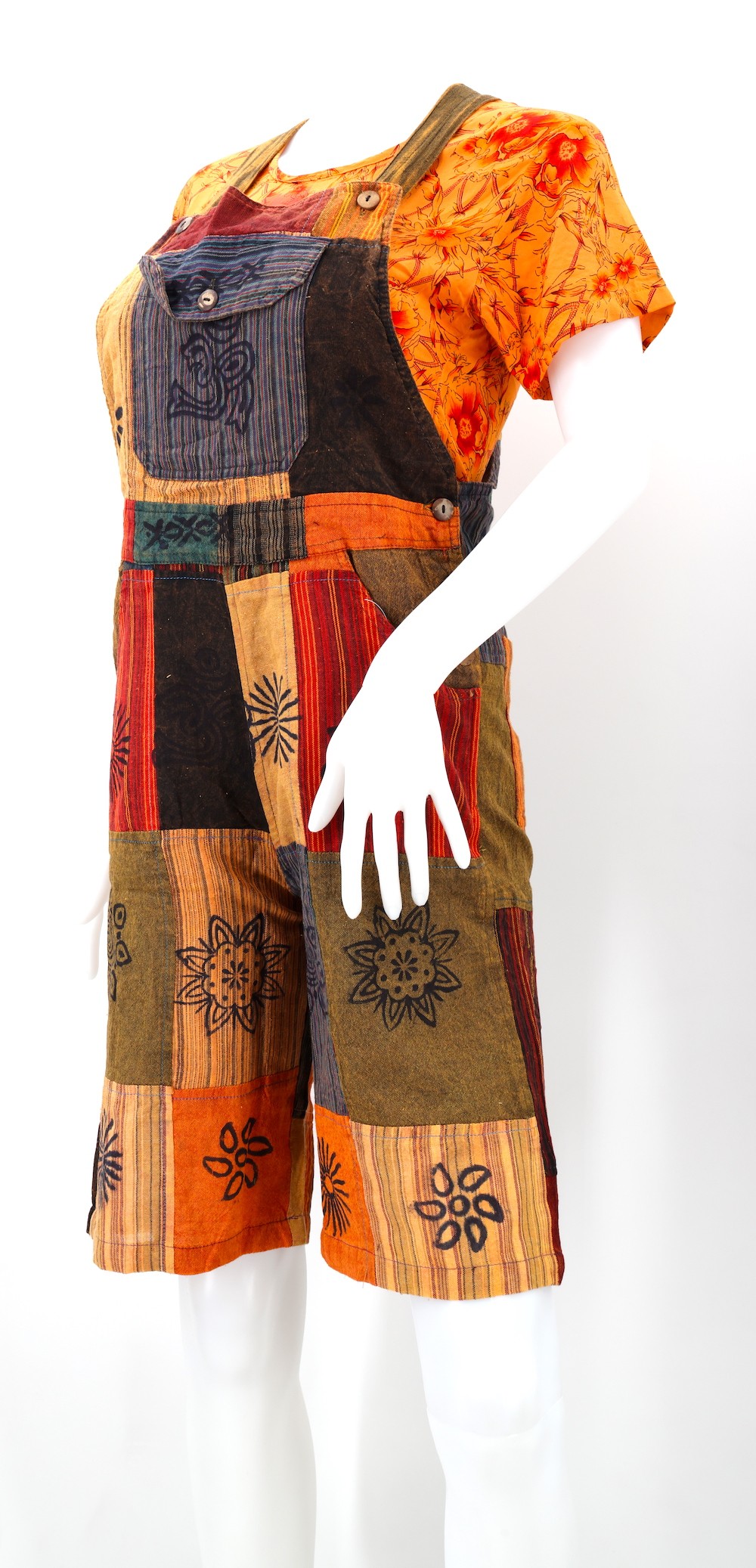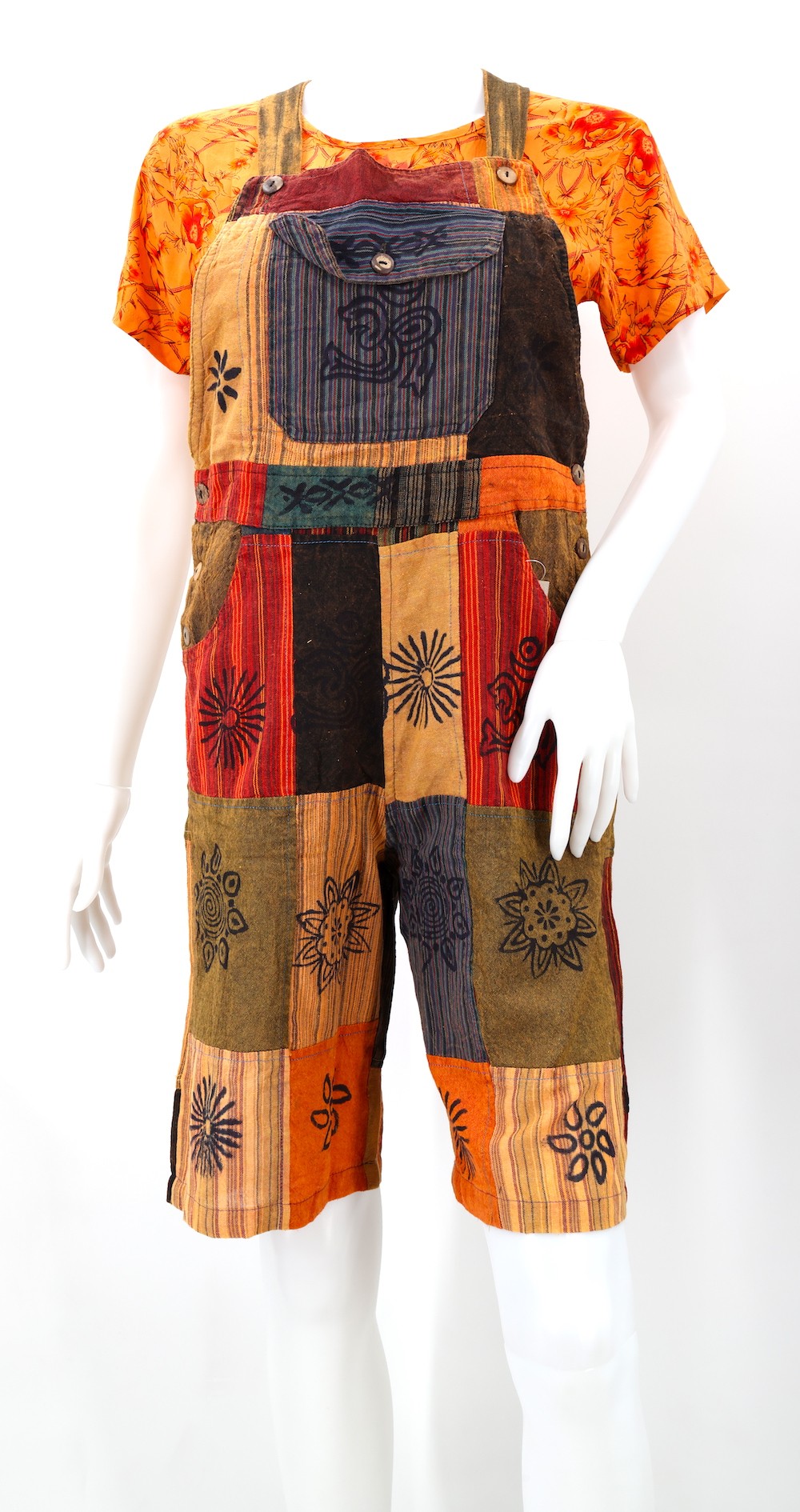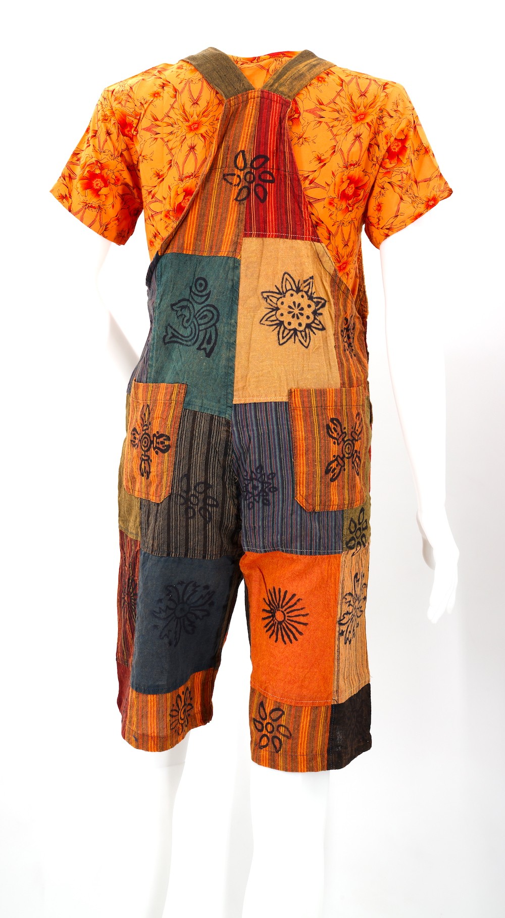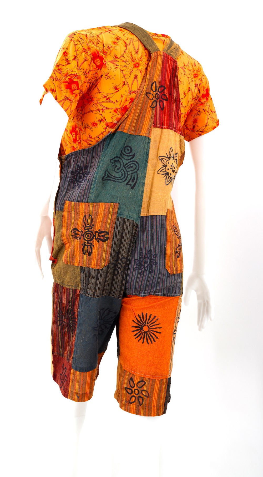 The overall features multiple pockets, adjustable straps, and waistband for a customizable fit. Handmade production processes reduce the carbon footprint associated with mass production, and the use of natural cotton fibers promotes a more environmentally friendly approach to fashion. By choosing this overall, you're making a conscious decision to support ethical and sustainable practices. Experience the beauty of the Himalayas and indulge in the charm of handmade clothing with this extraordinary short overall.