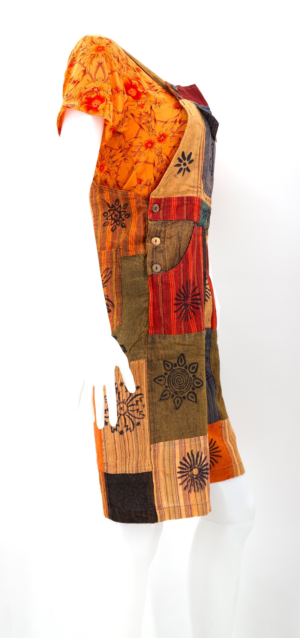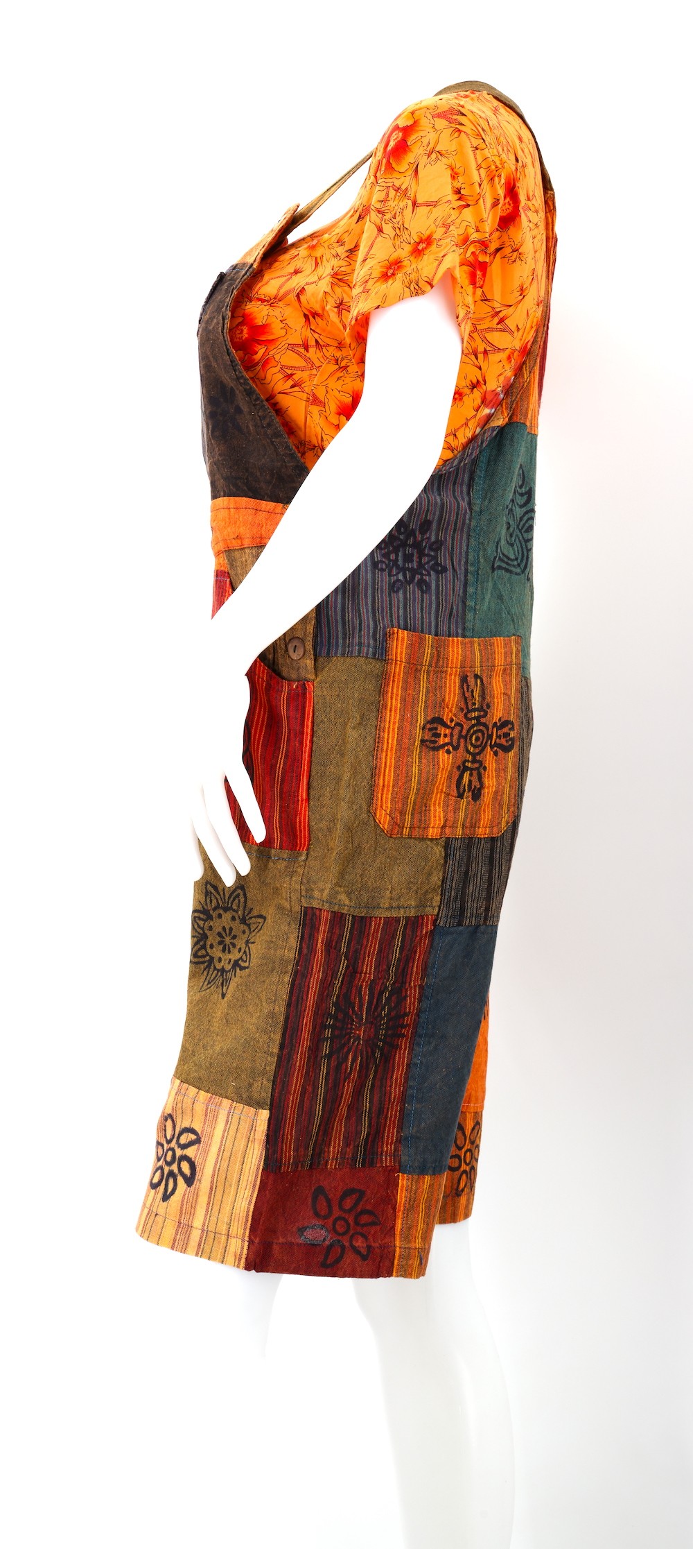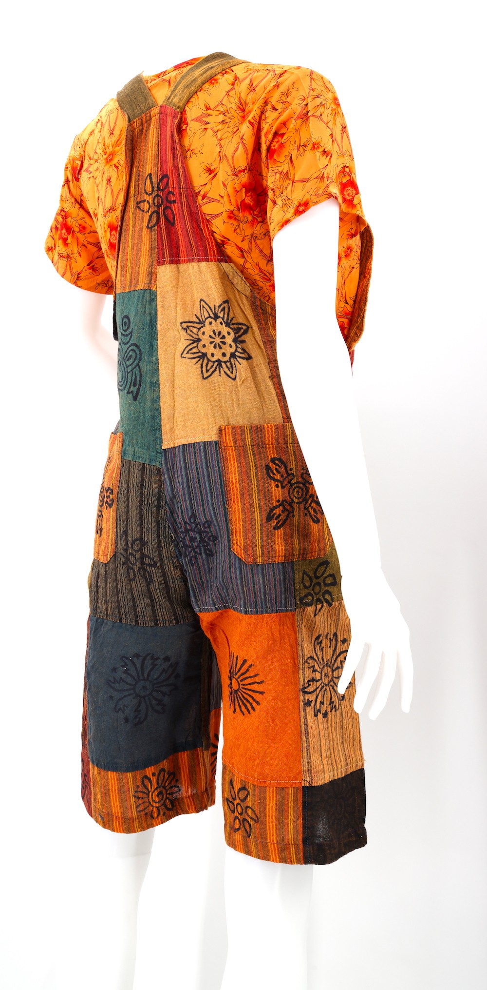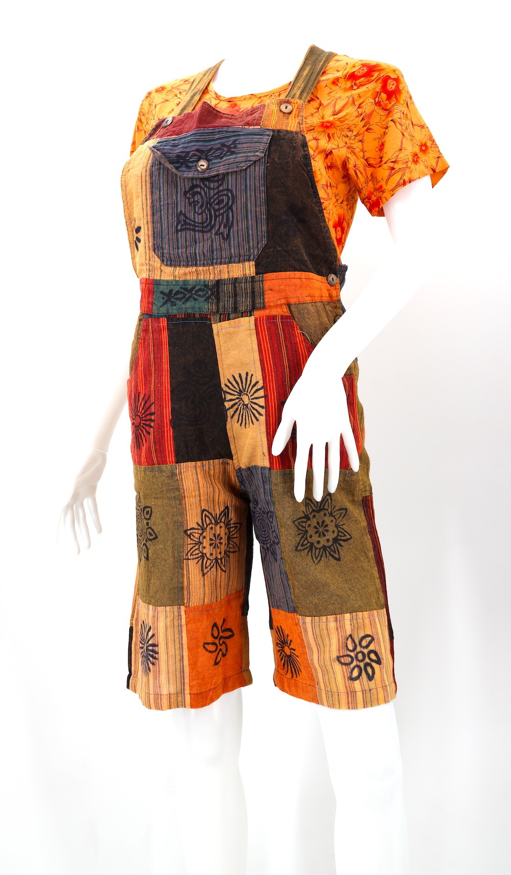 The overall features multiple pockets, adjustable straps, and waistband for a customizable fit. Handmade production processes reduce the carbon footprint associated with mass production, and the use of natural cotton fibers promotes a more environmentally friendly approach to fashion. By choosing this overall, you're making a conscious decision to support ethical and sustainable practices. Experience the beauty of the Himalayas and indulge in the charm of handmade clothing with this extraordinary short overall.