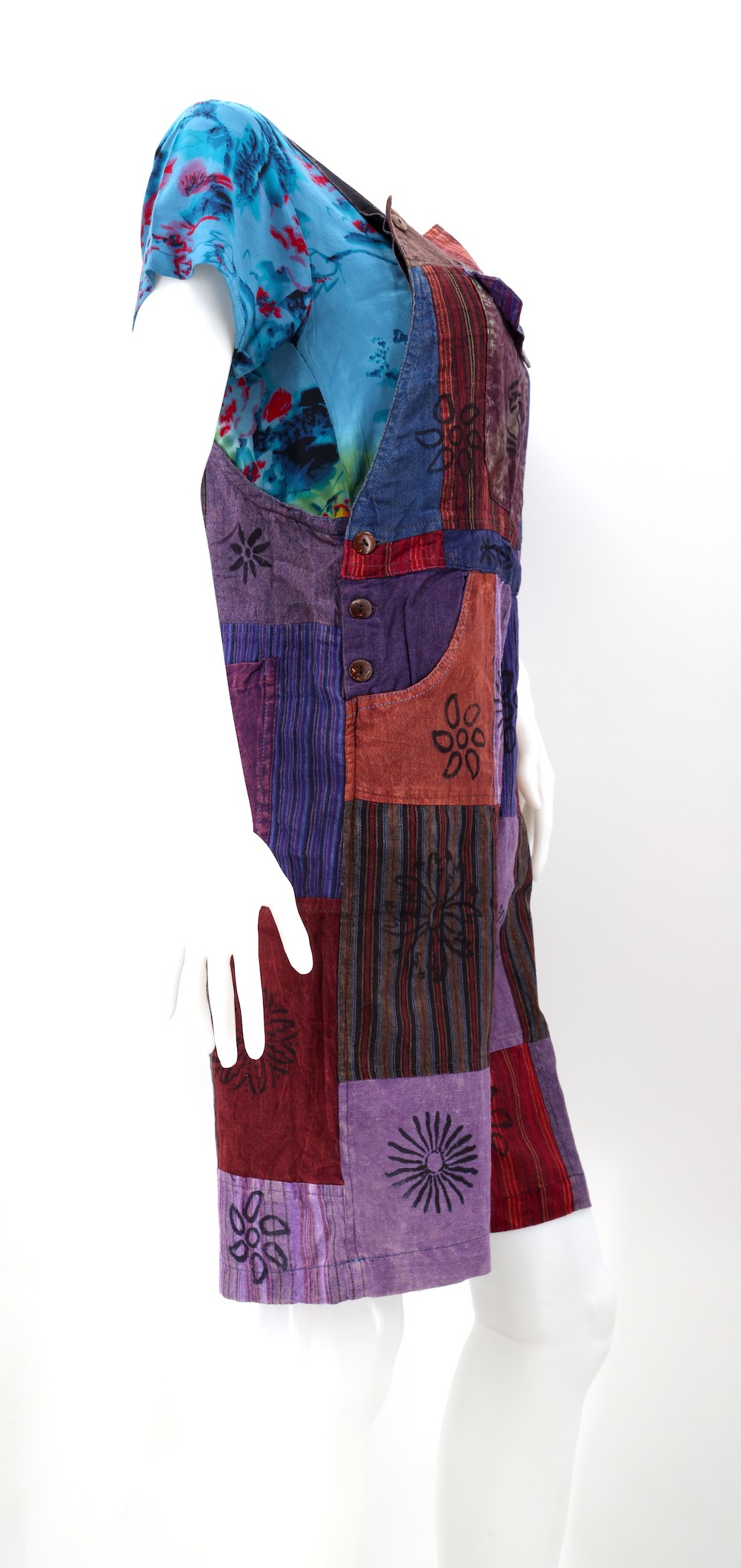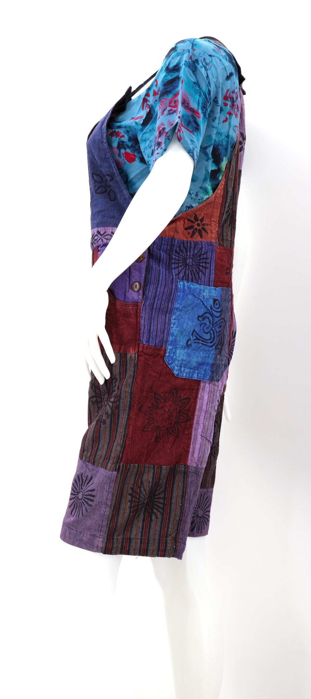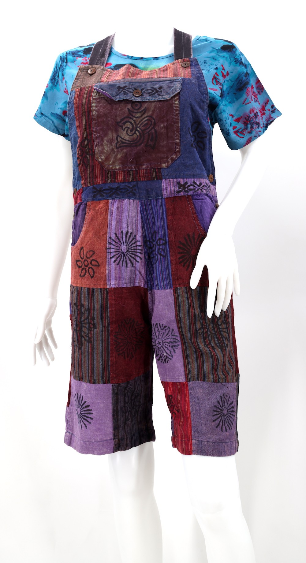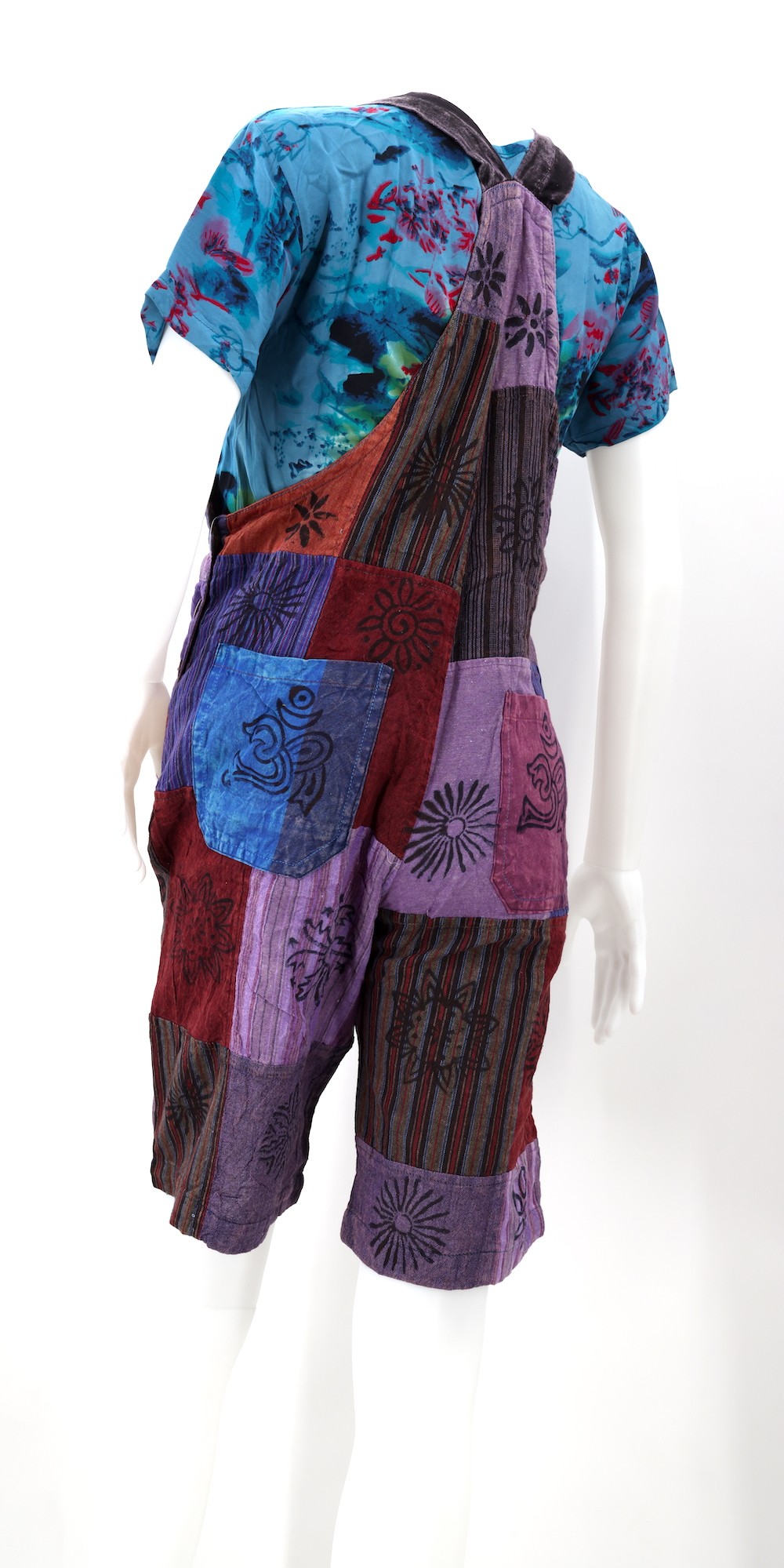 The overall features multiple pockets, adjustable straps, and waistband for a customizable fit. Handmade production processes reduce the carbon footprint associated with mass production, and the use of natural cotton fibers promotes a more environmentally friendly approach to fashion. By choosing this overall, you're making a conscious decision to support ethical and sustainable practices. Experience the beauty of the Himalayas and indulge in the charm of handmade clothing with this extraordinary short overall.