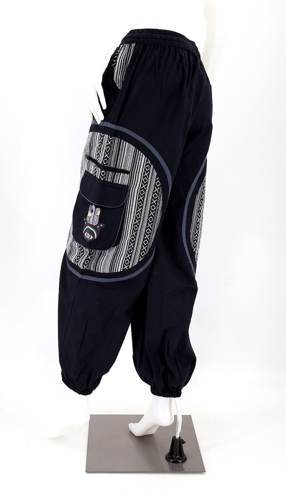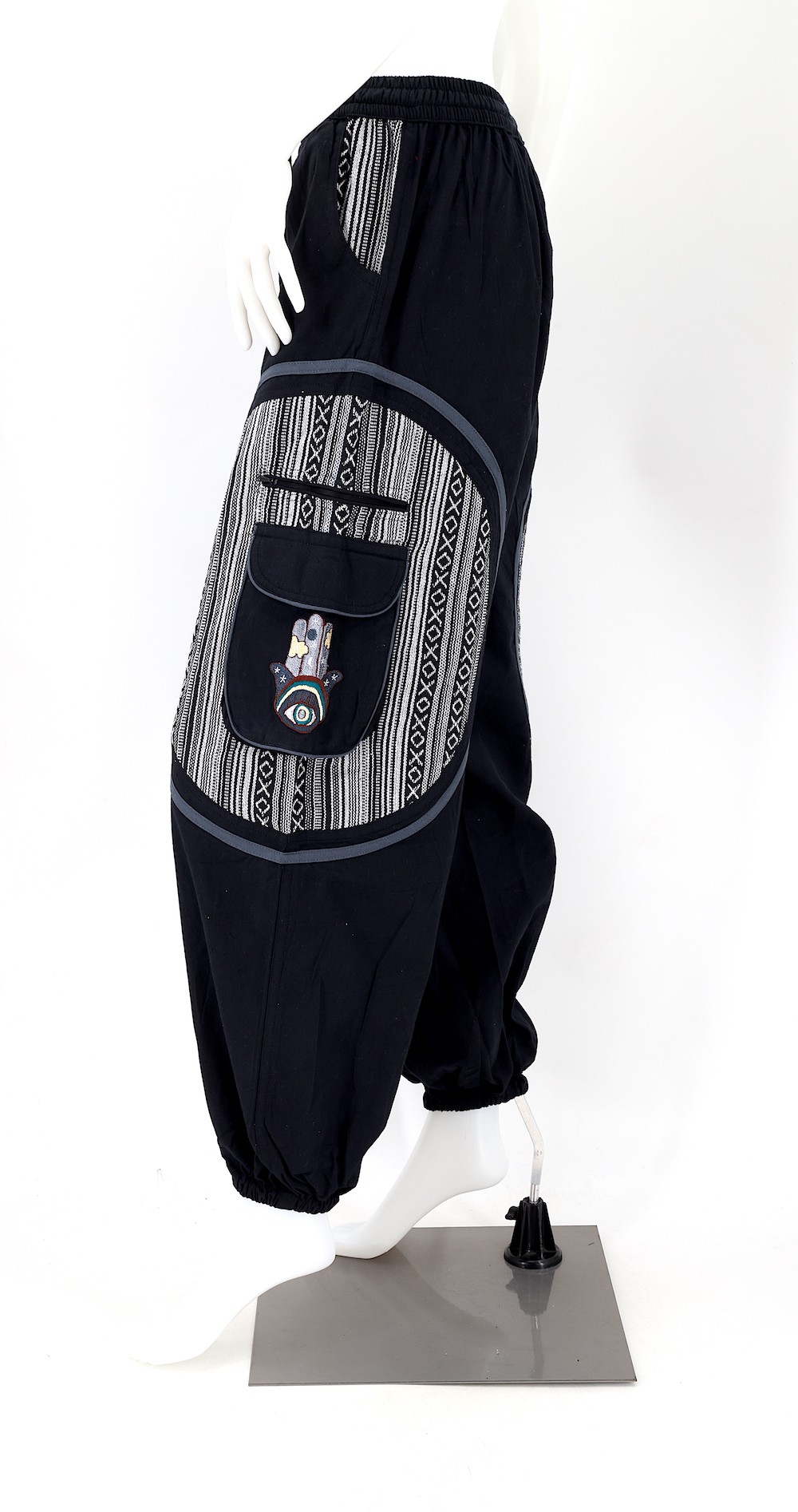 These unique Hippie Solid Color Plain Hamsa Hand Gheri mix Pants are crafted from the finest 100% Natural Handwoven Cotton by some of the most skilled artisans. Elevate your style instantly with these extraordinary and highly fashionable Solid Color Pants that are suitable for almost any occasion, ensuring you look your best every single time.