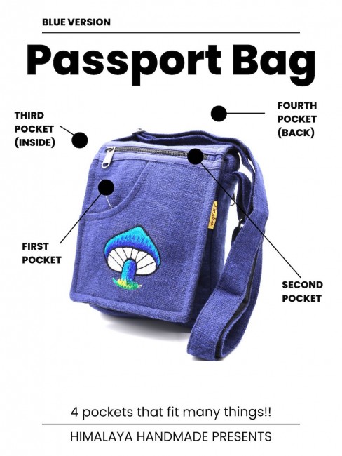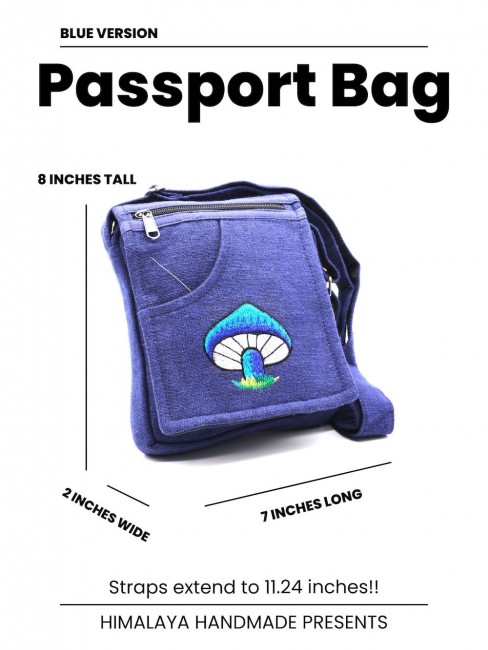 This beautiful Mushroom embroidered 100% pure cotton passport bags are handmade in Nepal. This beautiful passport bag features are it has one pocket in the front & one pocket in the back, it has two compartments, a large main compartment with zippered pocket inside and it has a long adjustable strap 11”-24” inch which you can clutch the bag across your body. This cotton passport bag is extraordinary and fashionable. This passport bag is suitable for carrying document, Mini Tablet, Mobile Phone and Purses.