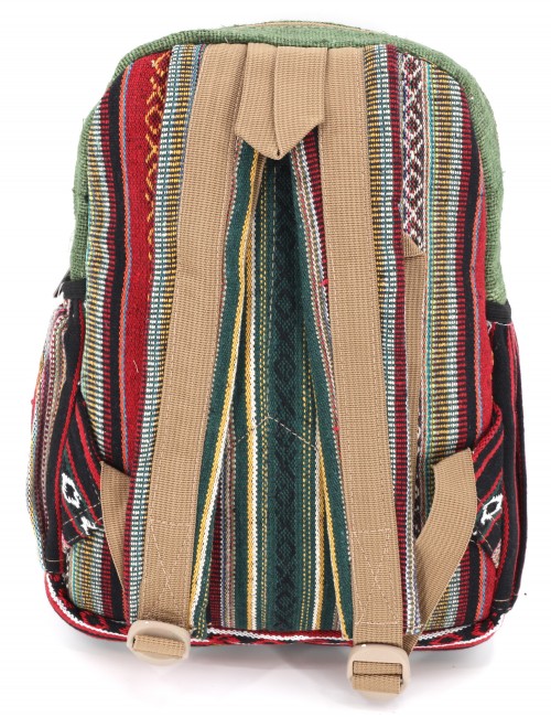 At Himalaya Handmade we are known for creating the modern Mini hemp backpacks that are now available in profusion of design and colors. Our Mini backpack with multicolor Aztec pattern is made from eco-friendly natural hand-woven hemp and cotton fabric and it is beautifully handcrafted in Nepal, they are high quality and this backpack has everything you need. You will not find higher quality anywhere else. All of our bags are sourced from the mountainous regions of Nepal and are all 100% Handmade. This backpack features are it has a unique multi colored pocket. Handcrafted this Backpack Includes, laptop compartment – fits up to 13 inch, 4 separate zippered compartments with 2 pockets, 2 water bottle holders, extremely strong construction, strong original two metal zippers on main compartment, soft padded straps and made from 100% Hemp, the entire bag is extremely strong but also breathable. Color of these bag will not be exact because arrangement of the pattern and these bags are handmade so in color can be slightly different. Pictures color are just example. Every bag is handmade and therefore unique.