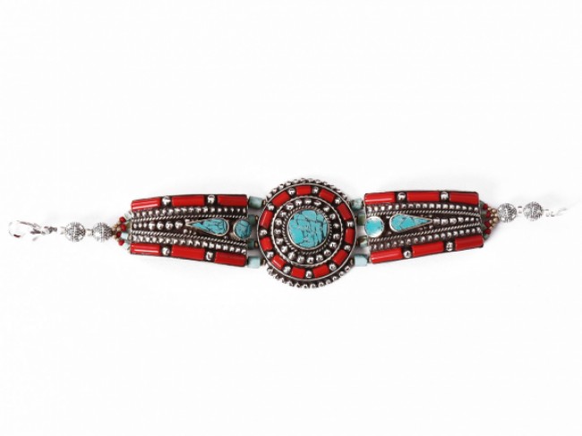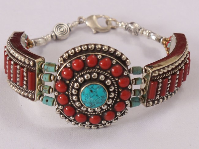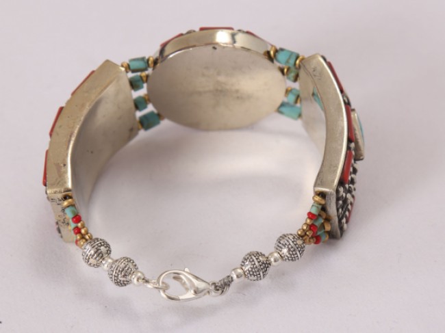The authentic and beautiful handmade German silver bracelet mixed with turquoise polished stone and garnet polished stone. These bracelets are both whimsical and fashionable. From simple, classic styles to unique cocktail bracelet and these styles of bracelets fit for any occasion. These bracelets are crafted by using only simple hand tools and perfected silver pieces inset with quality gemstones.