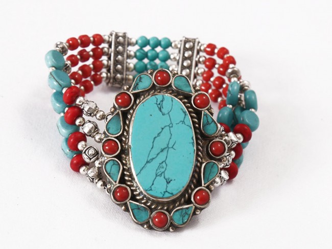 The authentic and beautiful handmade German silver bracelet mixed with turquoise polished stone and garnet polished stone. These bracelets are both whimsical and fashionable. From simple, classic styles to unique cocktail bracelet and these styles of bracelets fit for any occasion. These bracelets are crafted by using only simple hand tools and perfected silver pieces inset with quality gemstones.