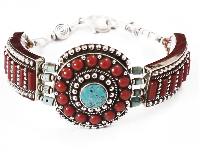 The authentic and beautiful handmade German silver bracelet mixed with turquoise polished stone and garnet polished stone. These bracelets are both whimsical and fashionable. From simple, classic styles to unique cocktail bracelet and these styles of bracelets fit for any occasion. These bracelets are crafted by using only simple hand tools and perfected silver pieces inset with quality gemstones.