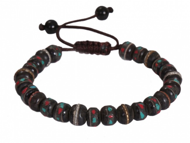 This prayer beads bracelet is handmade as with all handcrafted and hand knotted work. It creates variations in color, size and design. It is darker in color that is used a prayer rosary and for meditation. A beads bracelet is strand of beads, traditionally used for counting during mantra meditations.