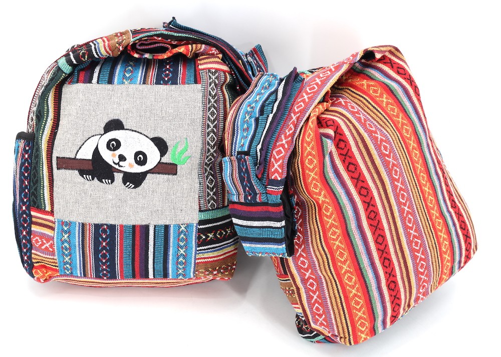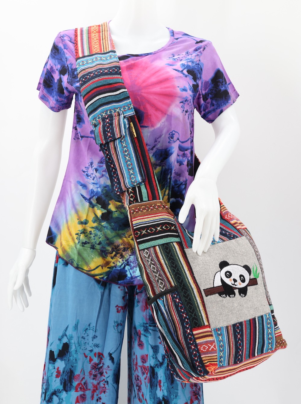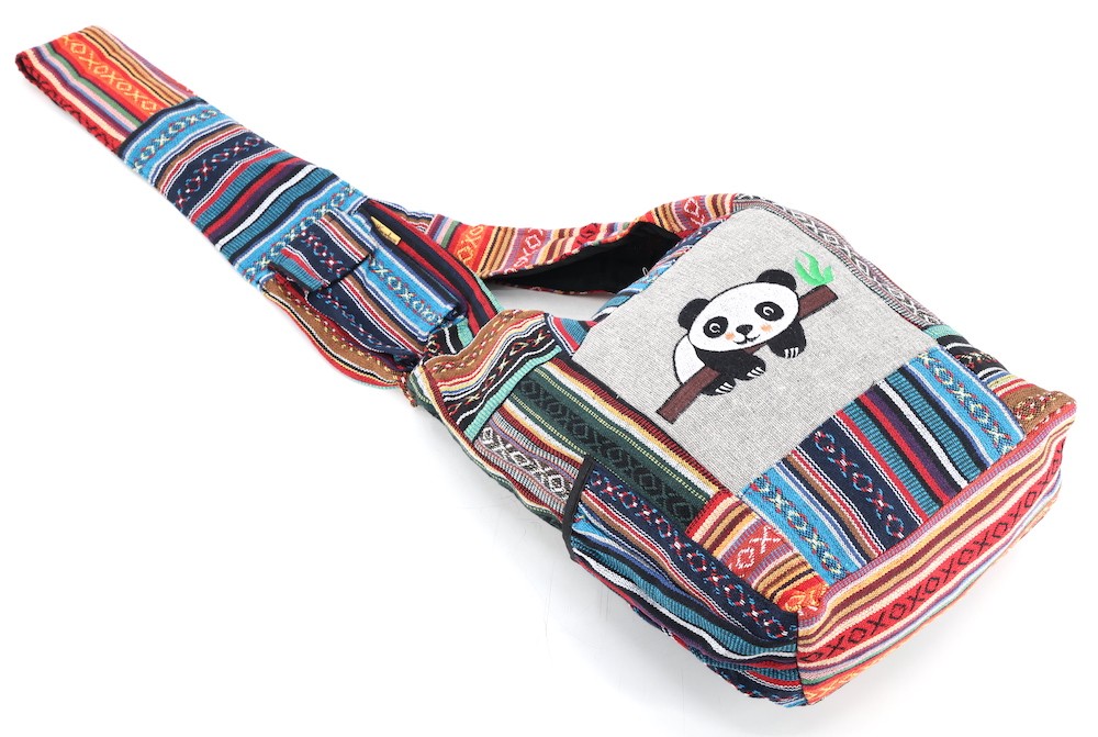 A versatile and beautiful Panda embroidery colorful 100% Natural Handwoven Cotton Fabric stitched by talented artisans in Himalaya range of Nepal. Purchasing means supporting underprivileged Nepalese communities who help make these bags.