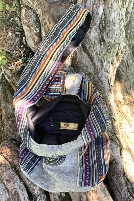 Double Stitched with the highest quality Handwoven Cotton and double zipper with shoulder straps 24-inch one size fits all. Dimensions: 14” x 11 x 4" inch / 36 x 28 x 10 cm