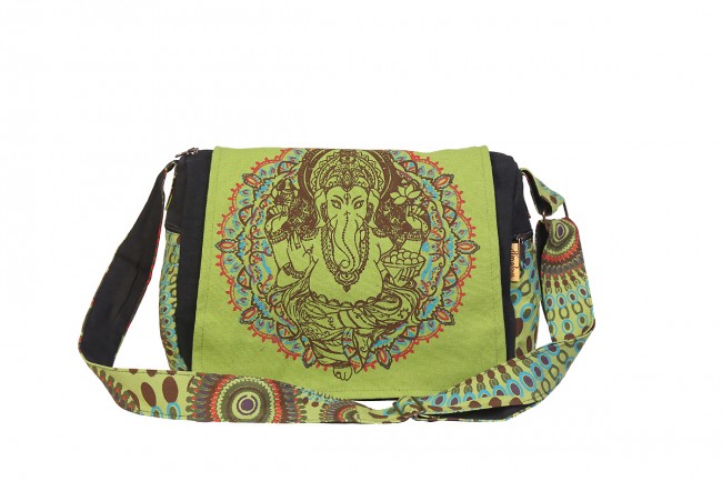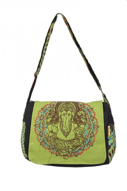 This beautiful Ganesh printed ladies cotton bags are handmade in Nepal. This beautiful ladies bags features are it has one outside pocket, 2 small pocket in the side & a large main compartment with zippered, it has also secrete pocket inside the main compartment and it is specially design for ladies. This cotton bag is extraordinary and fashionable. It is fair trade product.