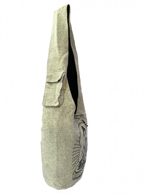 Pure 100% BTC Heavy duty vintage Handwoven cotton Buddha print Yoga bag is handmade in Nepal. This Yoga bag has hidden pocket with zipper closuer inside the main compartment and the dimention of teh hidden pocket 7'' X 6'', The main compartment with zipper closuer also it has string with key ring on it which gives extra looks and also it has pocket on teh strap with flap cover and with velcor clouser where you can keep accessories. It is supremely versatile and fashionable. This bag is suitable for carrying passport, mobile phone and mini iPad and other nesecities. It is fair trade product. Could be hand washed or machine washed in cold water.