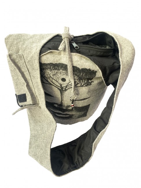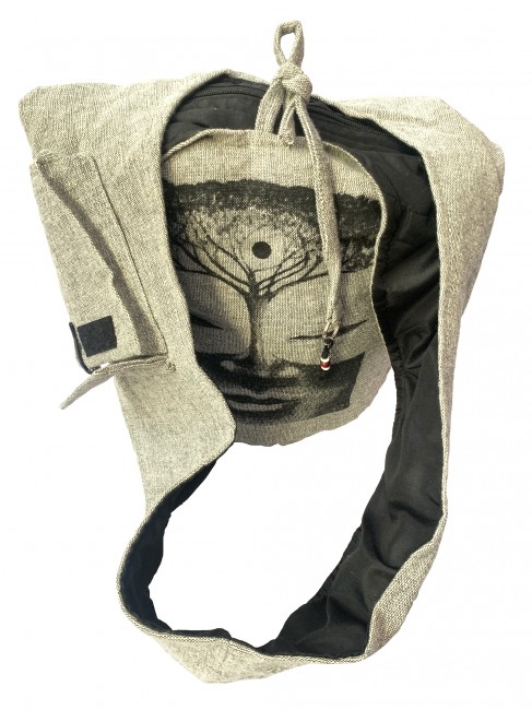 Pure 100% BTC Heavy duty vintage handwoven cotton Tree of Life Buddha (Boddhi Tree) print Yoga bag is handmade in Nepal. This Yoga bag has hidden pocket with zipper closuer inside the main compartment and the dimention of teh hidden pocket 7'' X 6'', The main compartment with zipper closuer also it has string with key ring on it which gives extra looks and also it has pocket on teh strap with flap cover and with velcor clouser where you can keep accessories. It is supremely versatile and fashionable. This bag is suitable for carrying passport, mobile phone and mini iPad and other nesecities. It is fair trade product. Could be hand washed or machine washed in cold water.