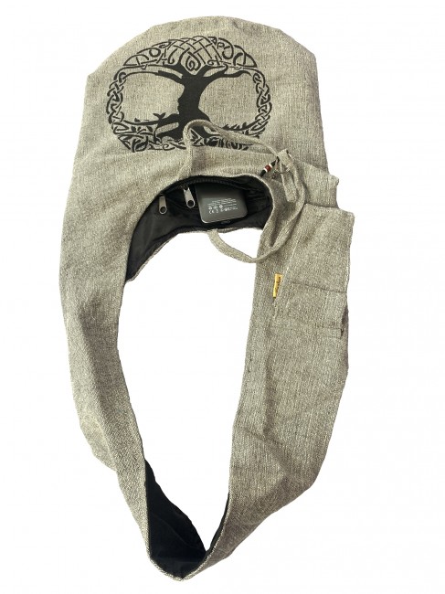 Pure 100% BTC Heavy duty vintage handwoven cotton Tree of Life print Yoga bag is handmade in Nepal. This Yoga bag has hidden pocket with zipper closuer inside the main compartment and the dimention of teh hidden pocket 7'' X 6'', The main compartment with zipper closuer also it has string with key ring on it which gives extra looks and also it has pocket on teh strap with flap cover and with velcor clouser where you can keep accessories. It is supremely versatile and fashionable. This bag is suitable for carrying passport, mobile phone and mini iPad and other nesecities. It is fair trade product. Could be hand washed or machine washed in cold water.