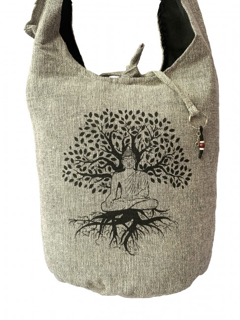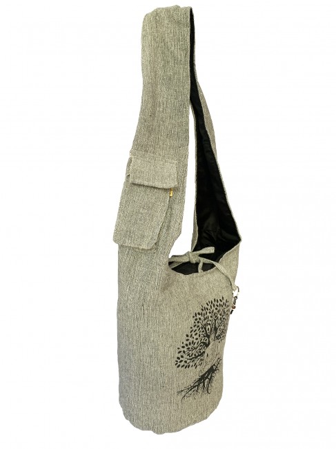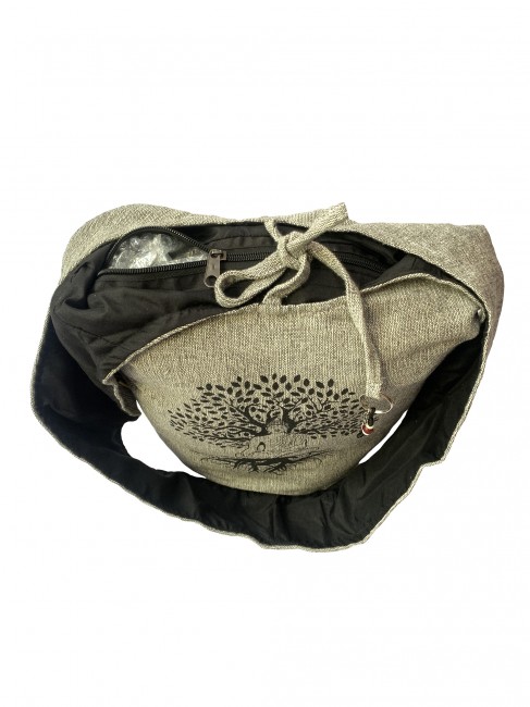 Pure 100% BTC Heavy duty vintage handwoven cotton Tree of Life with Buddha print Yoga bag is handmade in Nepal. This Yoga bag has hidden pocket with zipper closuer inside the main compartment and the dimention of teh hidden pocket 7'' X 6'', The main compartment with zipper closuer also it has string with key ring on it which gives extra looks and also it has pocket on teh strap with flap cover and with velcor clouser where you can keep accessories. It is supremely versatile and fashionable. This bag is suitable for carrying passport, mobile phone and mini iPad and other nesecities. It is fair trade product. Could be hand washed or machine washed in cold water.