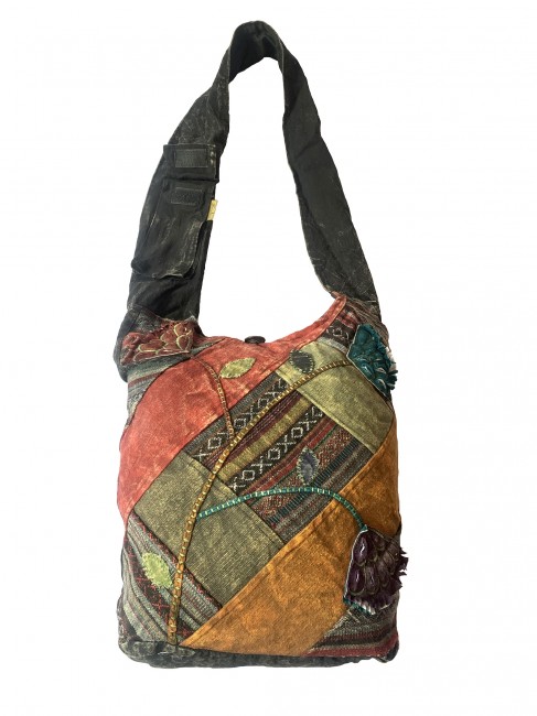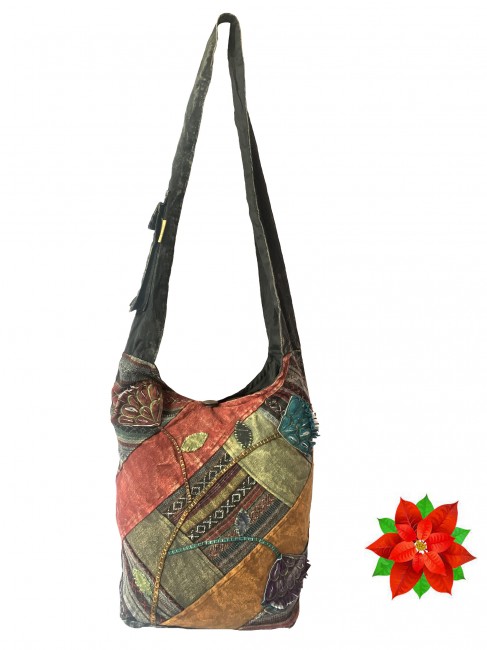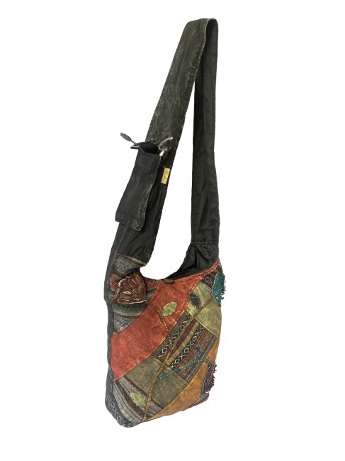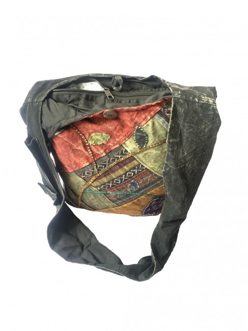 Pure 100% cotton Stonewashed Patch floweral Yoga bag is handmade in Nepal. This Yoga bag has hidden pocket with zipper closuer inside the main compartment and the dimention of teh hidden pocket 7'' X 6'', The main compartment with zipper closuer also it has string with key ring on it which gives extra looks and also it has pocket on teh strap with flap cover and with velcor clouser where you can keep accessories. It is supremely versatile and fashionable. This bag is suitable for carrying passport, mobile phone and mini iPad and other nesecities. It is fair trade product. Could be hand washed or machine washed in cold water.