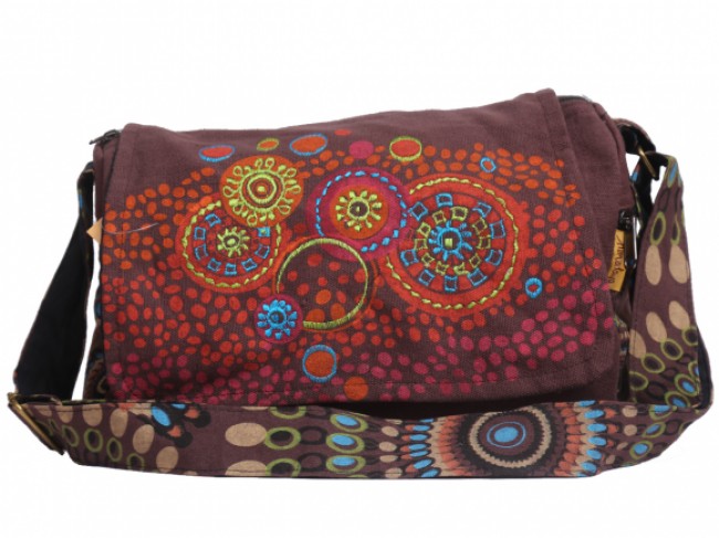 This beautiful Mandala printed 100% pure cotton bags are handmade in Nepal. This beautiful shoulder bag features are it has four compartment with zippers, it has secrete pocket with zipper in side the main compartment, one pocket on the front one pocket on the back and it has a long adjustable strap which you can clutch the bag across your body. This cotton bag is extraordinary and fashionable. And it is fair trade product.
