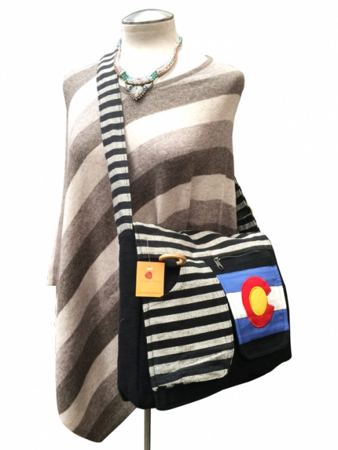 This beautiful Colorado flag embroidery 100% pure cotton bags are handmade in Nepal. This beautiful side bag features are it has two outside pocket & one cellphone pocket, a large main compartment with zippered, it has also secrete pocket inside the main compartment and it has a long adjustable strap which you can clutch the bag across your body. This cotton bag is extraordinary and fashionable. It is fair trade product.
