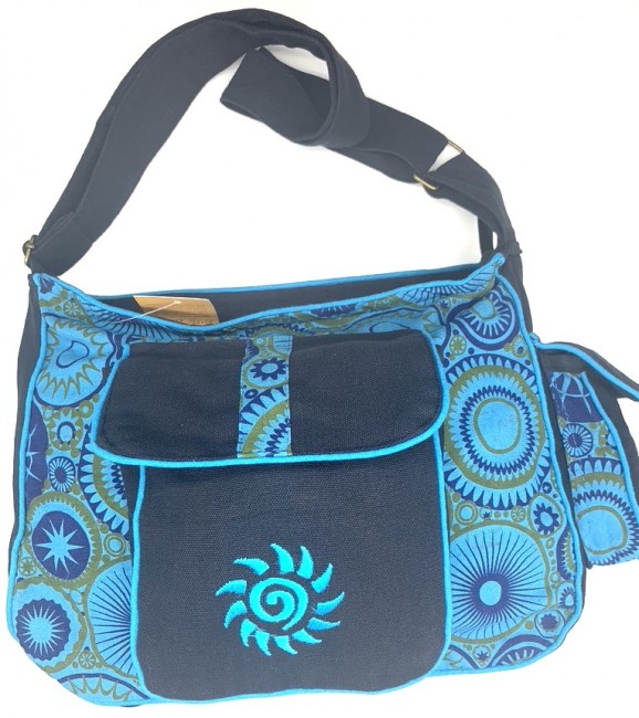 Great Design with Mandala print highlighted and Sun embroidery, Exceptionally High-quality Fabric and stitching. It has multiple pockets to help you keep better organization among your stuff, The main compartment can be use to carry up to 13 inches Laptop or tablet.