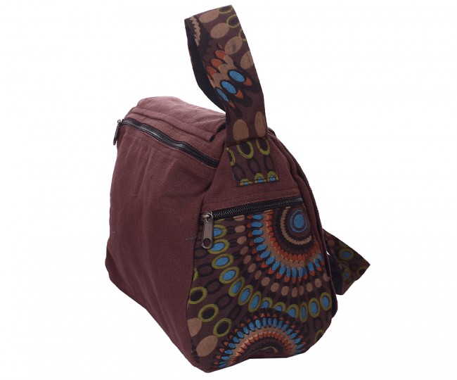 This beautiful Om printed ladies cotton bags are handmade in Nepal. This beautiful ladies bags features are it has one outside pocket, 2 small pocket in the side & a large main compartment with zippered, it has also secrete pocket inside the main compartment and it is specially design for ladies. This cotton bag is extraordinary and fashionable. It is fair trade product.