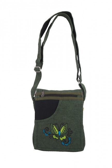 This beautiful Butterfly embroidered 100% pure cotton passport bags are handmade in Nepal. This beautiful passport bag features are it has one pocket in the front & one pocket in the back, it has two compartment, a large main compartment with zippered pocket inside and it has a long adjustable strap which you can clutch the bag across your body. This cotton passport bag is extraordinary and fashionable. This passport bag is suitable for carrying document and Ipad.