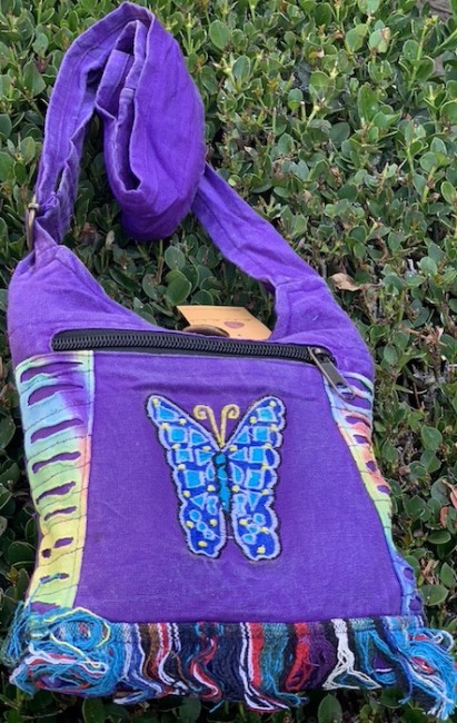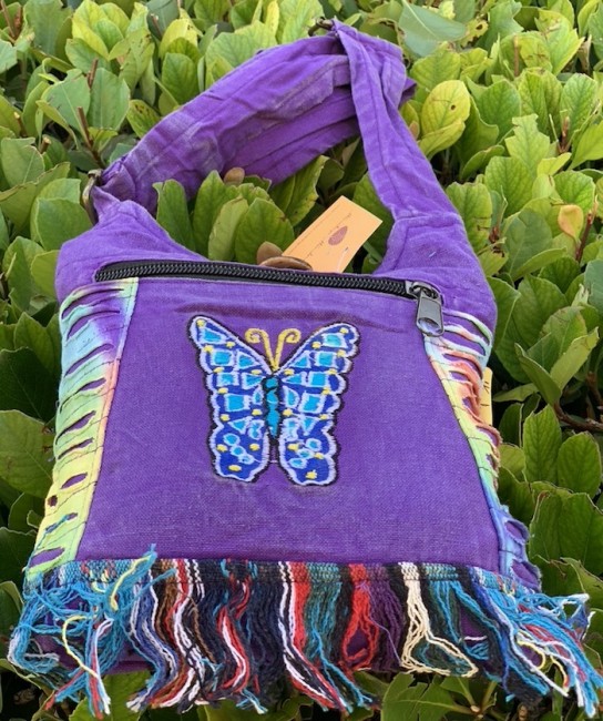 Pure 100% stone Wash cotton Butterfly hand Embroidery passport bag is handmade in Nepal. This passport bag has 3 compartments with zippers, in the main compartment it has secret pocket at 8"-7" inches with zippers and it has an adjustable strap at 11-24 inches. It is supremely versatile and fashionable. This bag is suitable for carrying passport, mobile phone and mini iPad. It is fair trade product. Could be hand washed or machine washed in cold water.