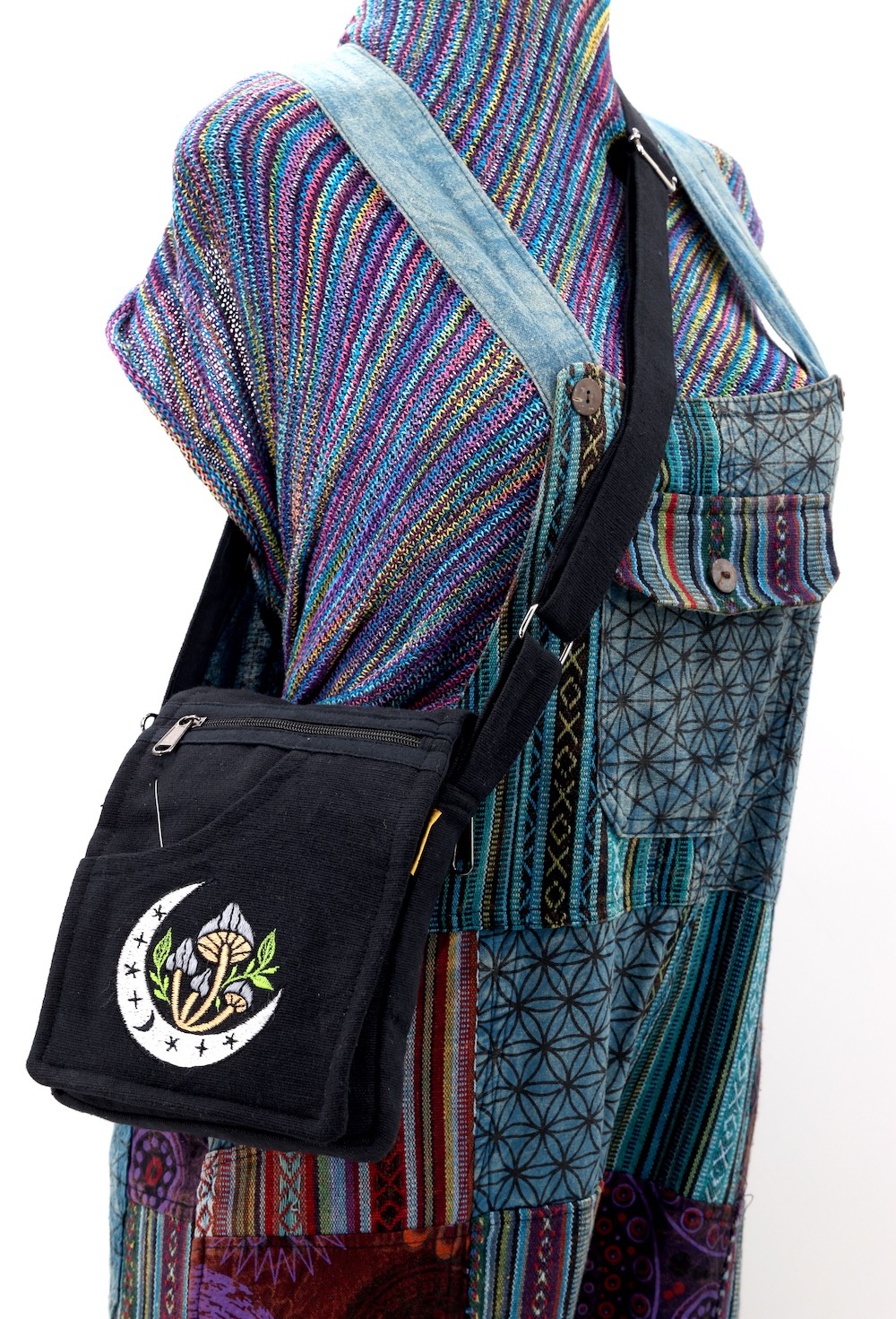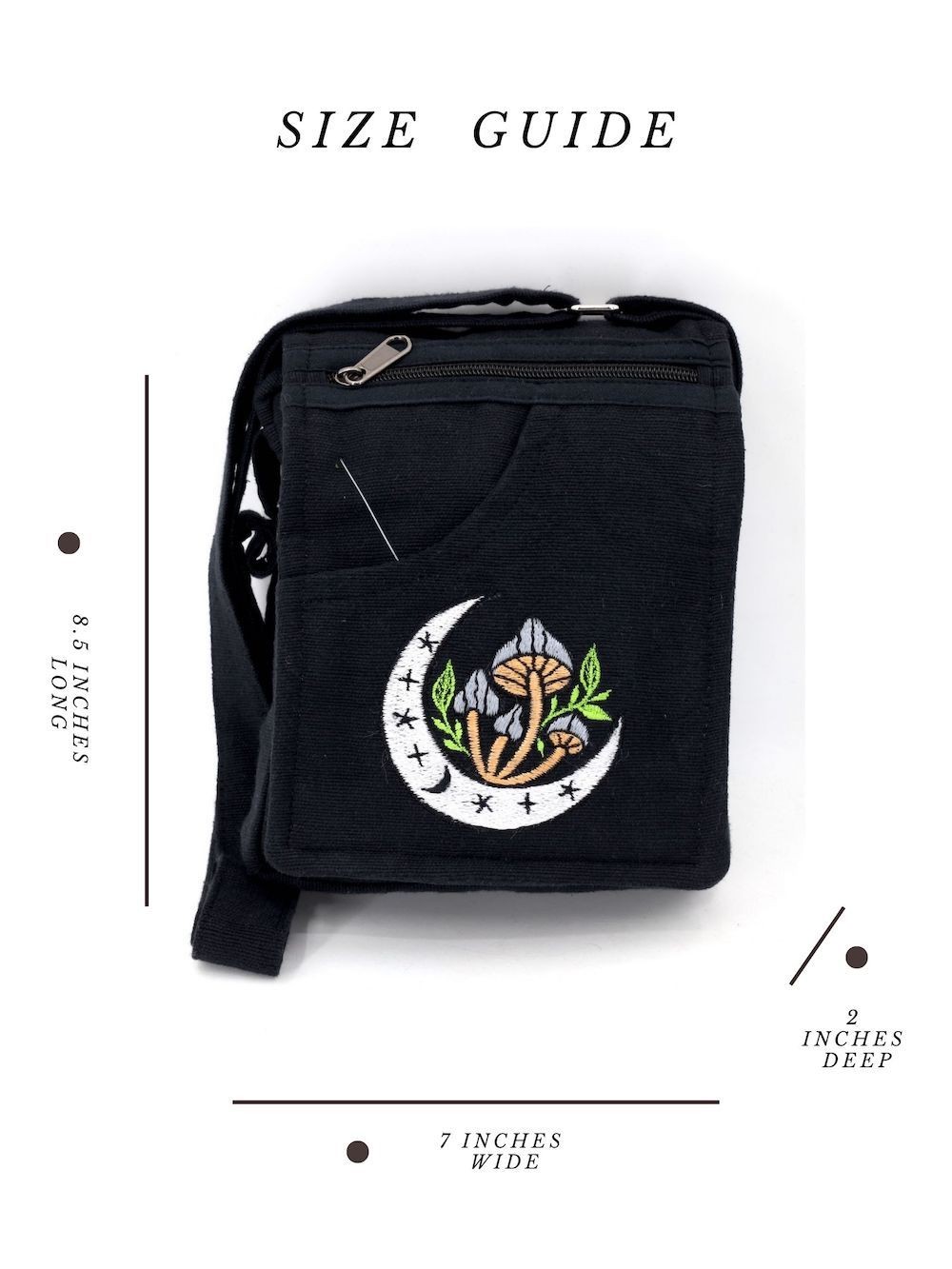 A versatile and beautiful mushroom design hand embroidered 100% Natural THC Free Himalaya Hand woven Cotton Fabric stitched by talented artisans in Himalaya Range of Nepal. Support underprivileged Nepalese communities with your purchase. Hand wash or Machine wash separately in cold water.