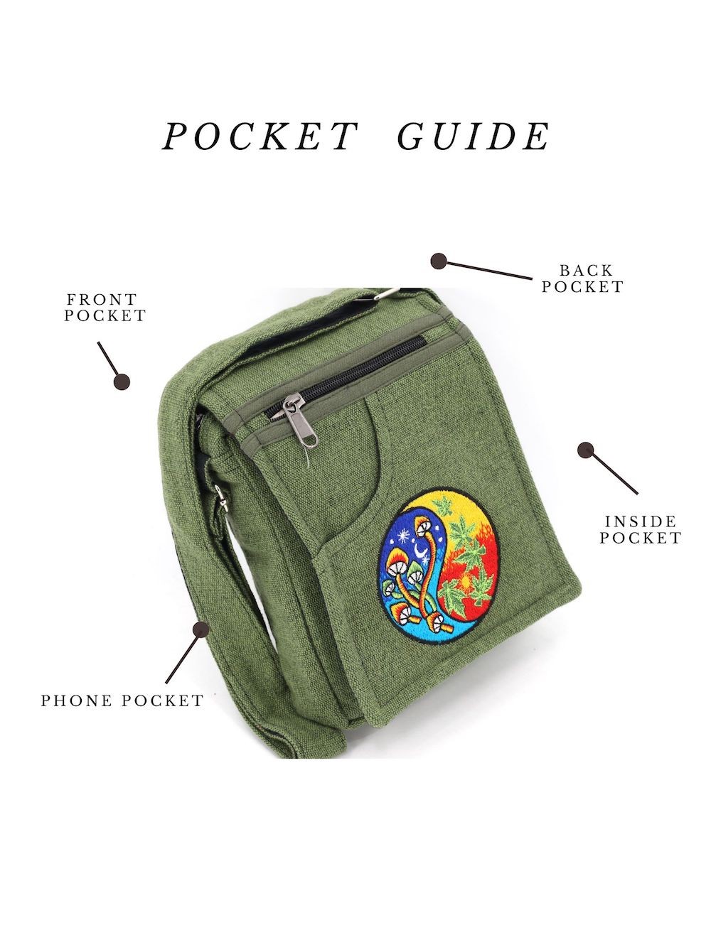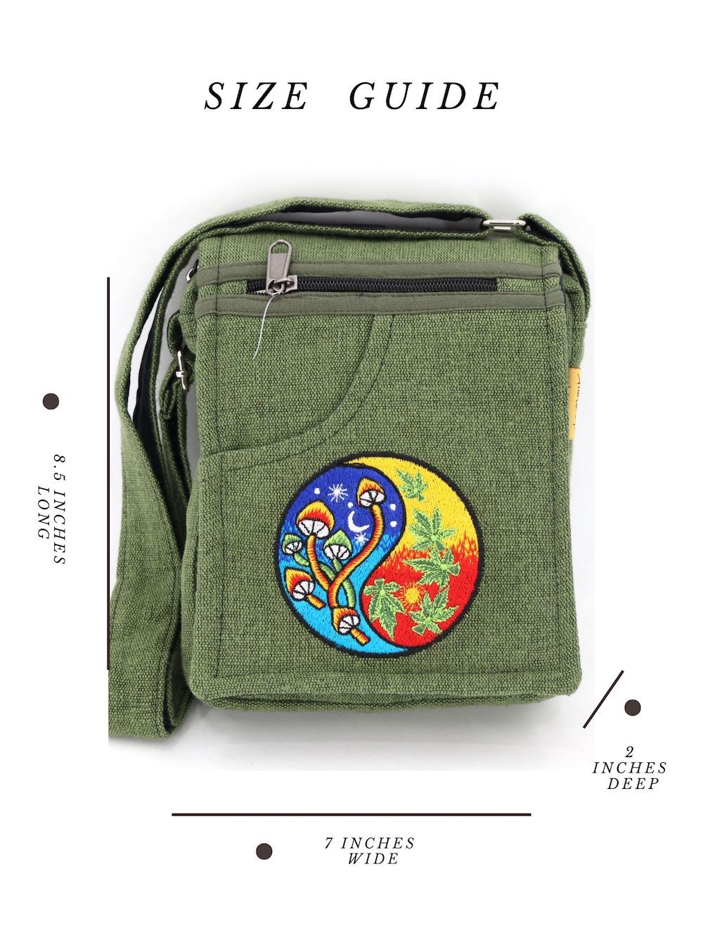 The beautiful Hand-Woven Cotton Travel bag is hand made in Nepal with pure 100% organic Himalaya Cotton. This modern Mushroom Embroidery Cotton passport bag is supremely versatile and fashionable. This bag features are it has two compartments with zippers and it has adjustable strap with outside two pockets in the front and in the main pocket above with a zipper. It is a fair trade made product.