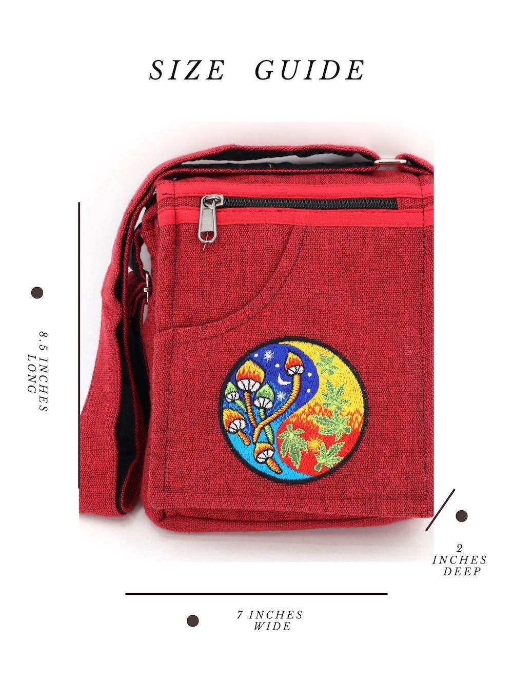 A versatile and beautiful Mushroom designed hand embroidered 100% Natural THC Free Himalaya Hand woven Cotton Fabric stitched by talented artisans in Himalaya Range of Nepal. Support underprivileged Nepalese communities with your purchase. Hand wash or Machine wash separately in cold water.