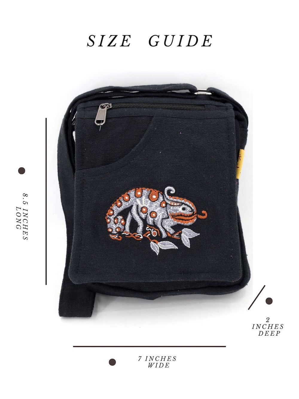 A versatile and beautiful Chameleon designed hand embroidered 100% Natural THC Free Himalaya Hand woven Cotton Fabric stitched by talented artisans in Himalaya Range of Nepal. Support underprivileged Nepalese communities with your purchase. Hand wash or Machine wash separately in cold water.