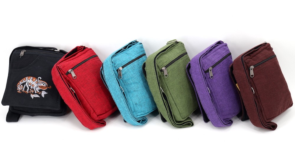 The beautiful Hand-Woven Cotton Travel bag is hand made in Nepal with pure 100% organic Himalaya Cotton. This modern Mushroom Embroidery Cotton passport bag is supremely versatile and fashionable. This bag features are it has two compartments with zippers and it has adjustable strap with outside two pockets in the front and in the main pocket above with a zipper. It is a fair trade made product.