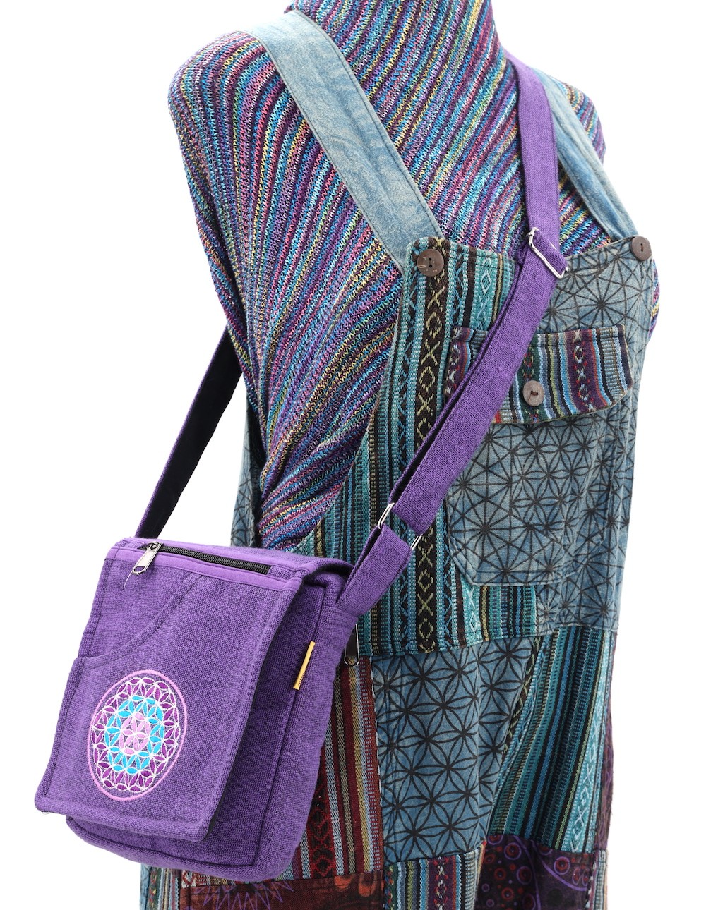 A versatile and beautiful Flower of Life designed hand embroidered 100% Natural THC Free Himalaya Hand woven Cotton Fabric stitched by talented artisans in Himalaya Range of Nepal. Support underprivileged Nepalese communities with your purchase. Hand wash or Machine wash separately in cold water.