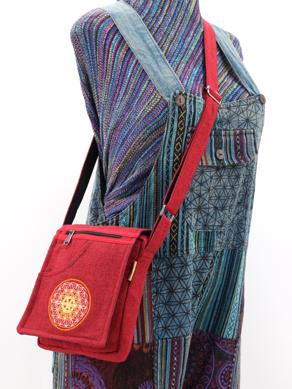A versatile and beautiful Flower of Life designed hand embroidered 100% Natural THC Free Himalaya Hand woven Cotton Fabric stitched by talented artisans in Himalaya Range of Nepal. Support underprivileged Nepalese communities with your purchase. Hand wash or Machine wash separately in cold water.