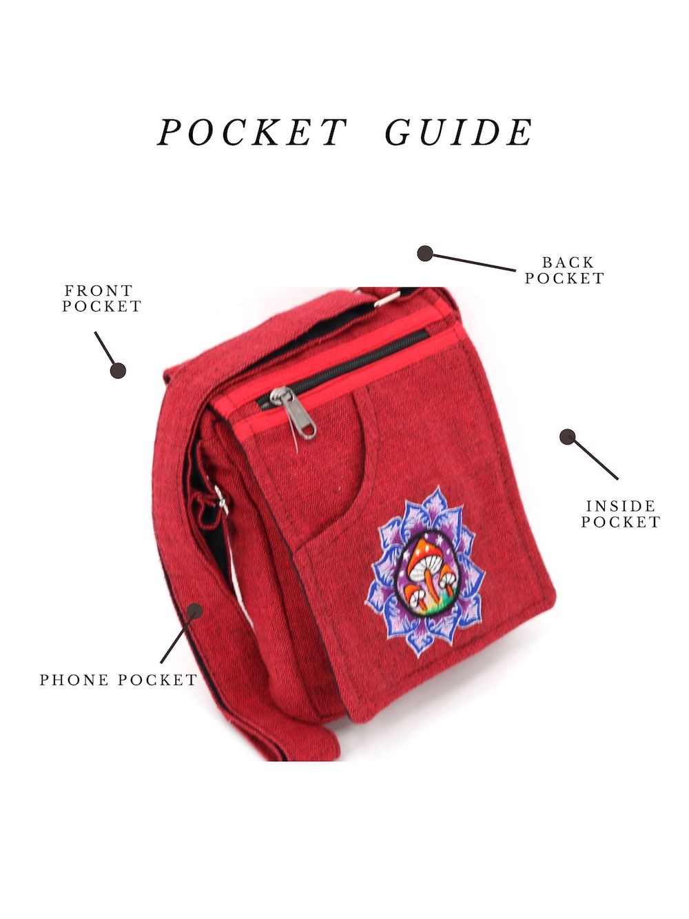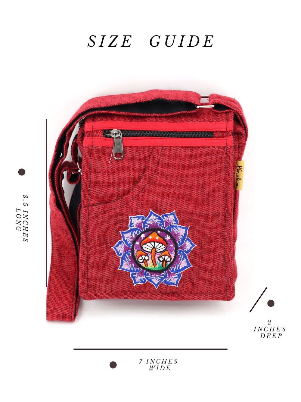 The beautiful Hand-Woven Cotton Travel bag is hand made in Nepal with pure 100% organic Himalaya Cotton. This modern Mushroom Embroidery Cotton passport bag is supremely versatile and fashionable. This bag features are it has two compartments with zippers and it has adjustable strap with outside two pockets in the front and in the main pocket above with a zipper. It is a fair trade made product.