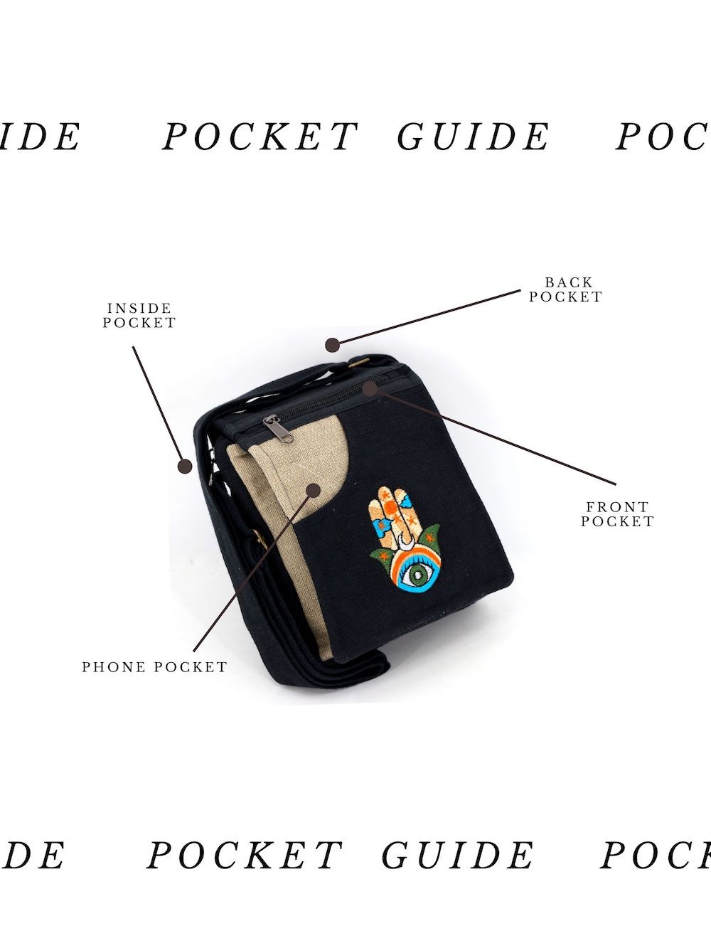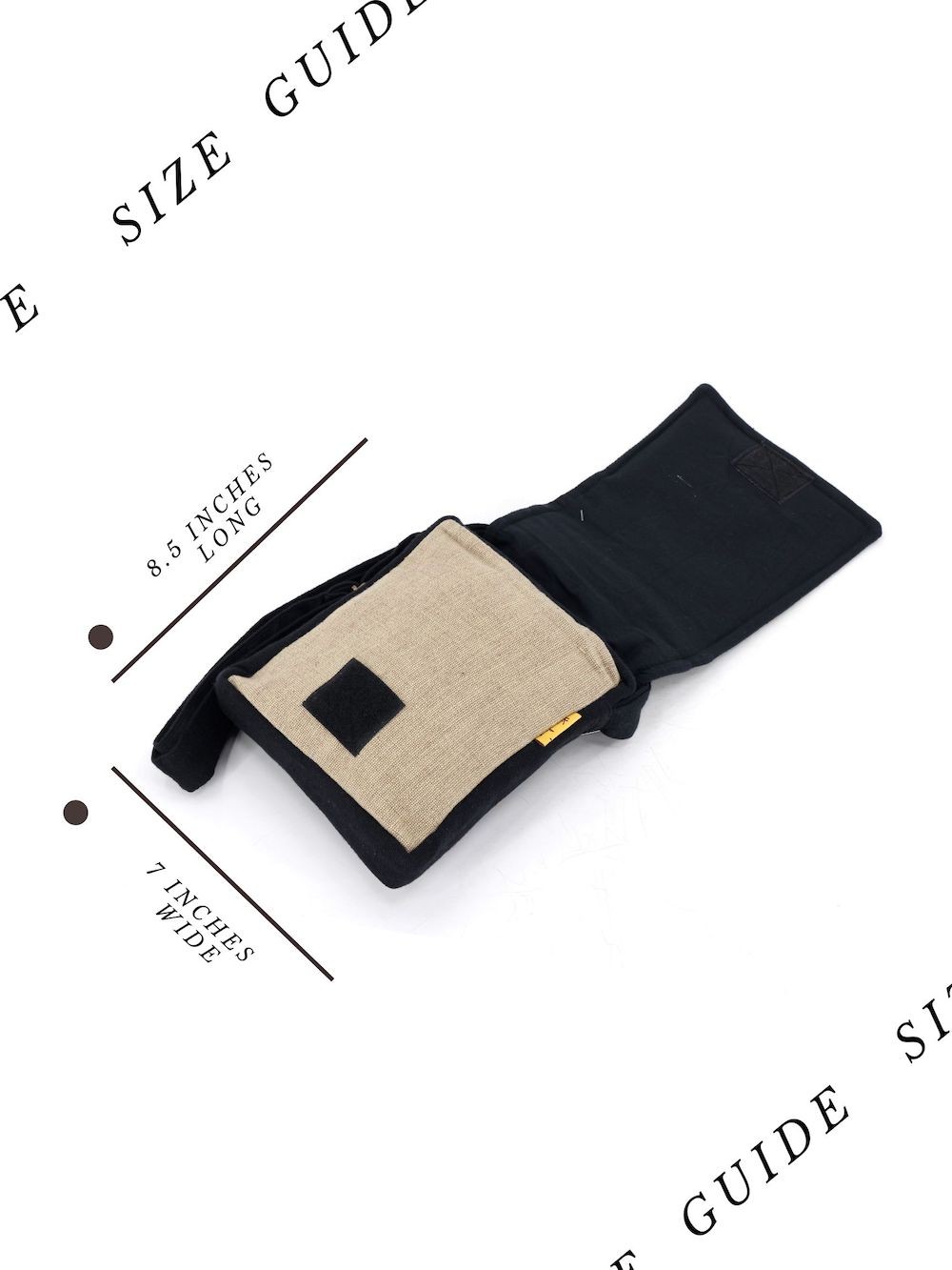 SECRET POCKET: HEIGHT: 7 INCHES, WIDTH: 6 INCHES