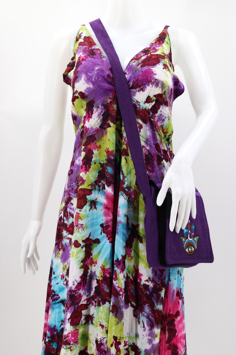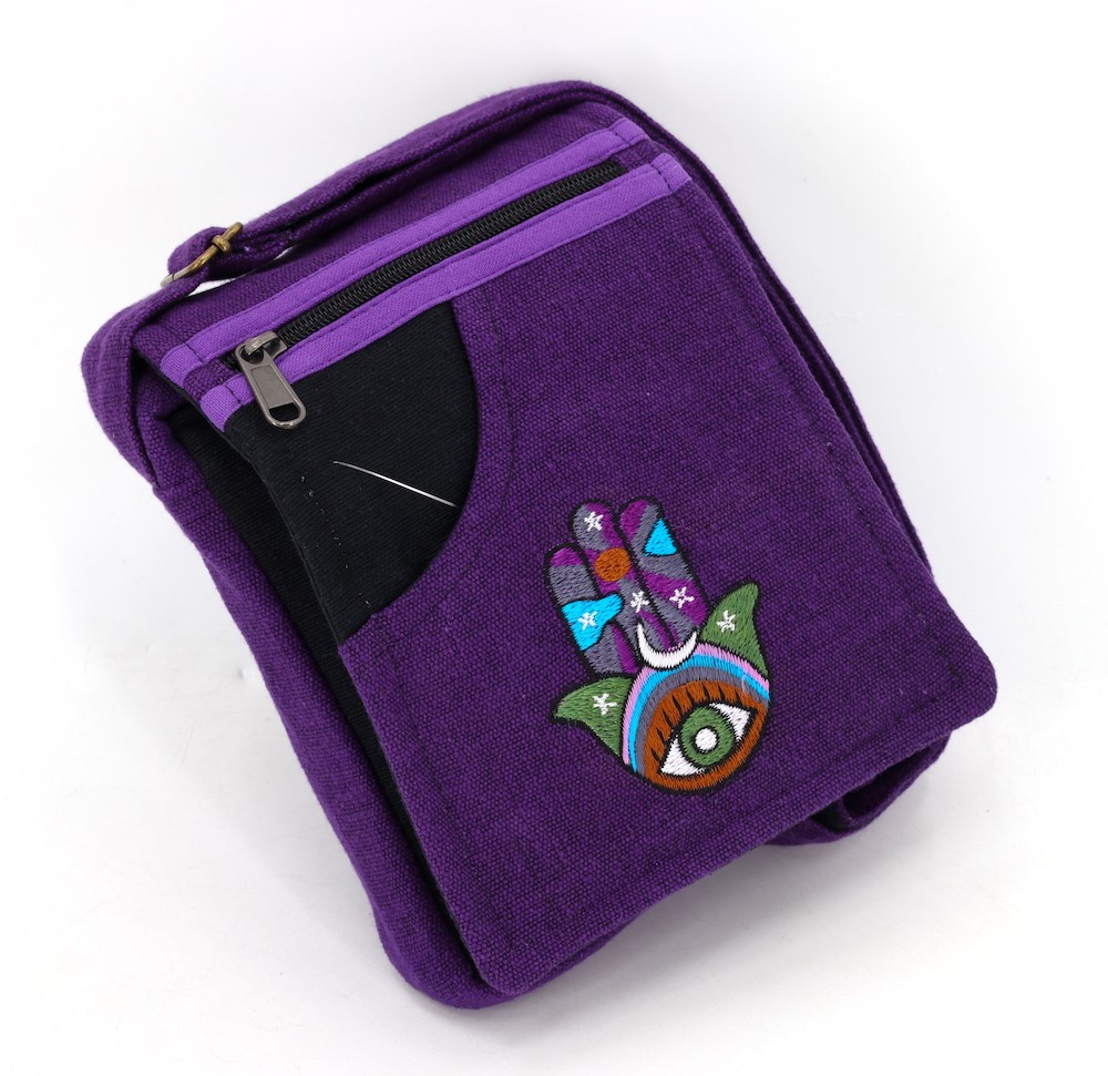 The beautiful Hand-Woven Cotton Travel bag is hand made in Nepal with pure 100% organic Himalaya Cotton. This modern Mushroom Embroidery Cotton passport bag is supremely versatile and fashionable. This bag features are it has two compartments with zippers and it has adjustable strap with outside two pockets in the front and in the main pocket above with a zipper. It is a fair trade made product.