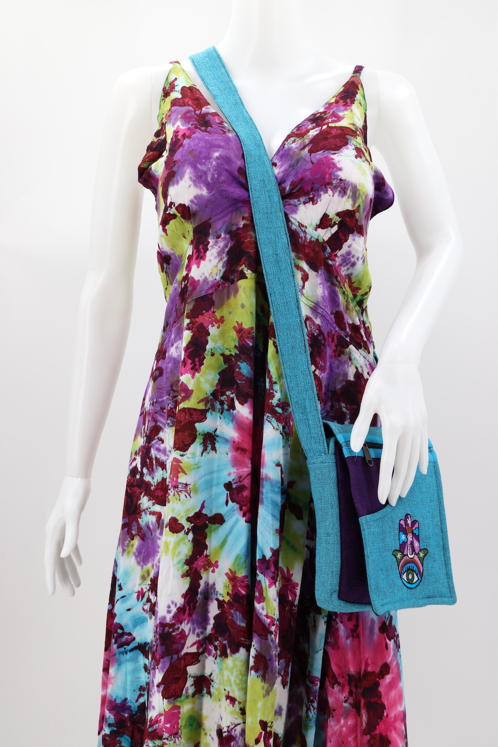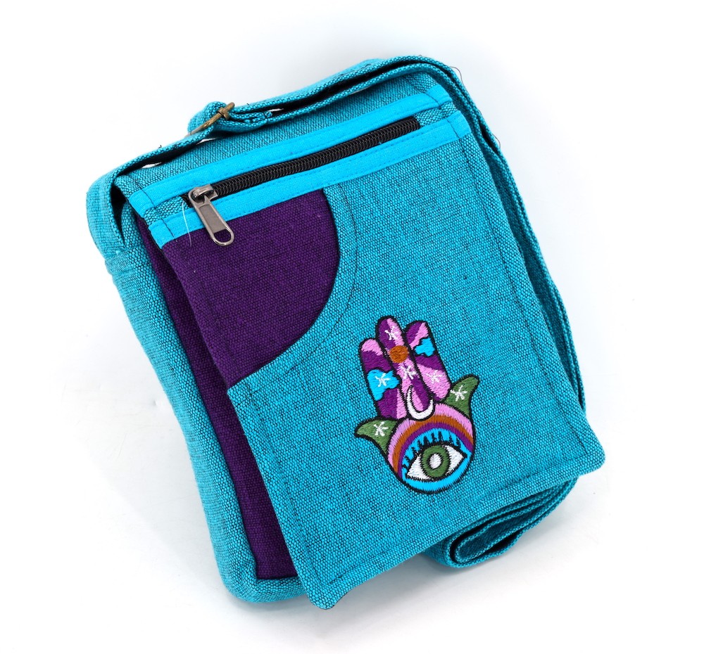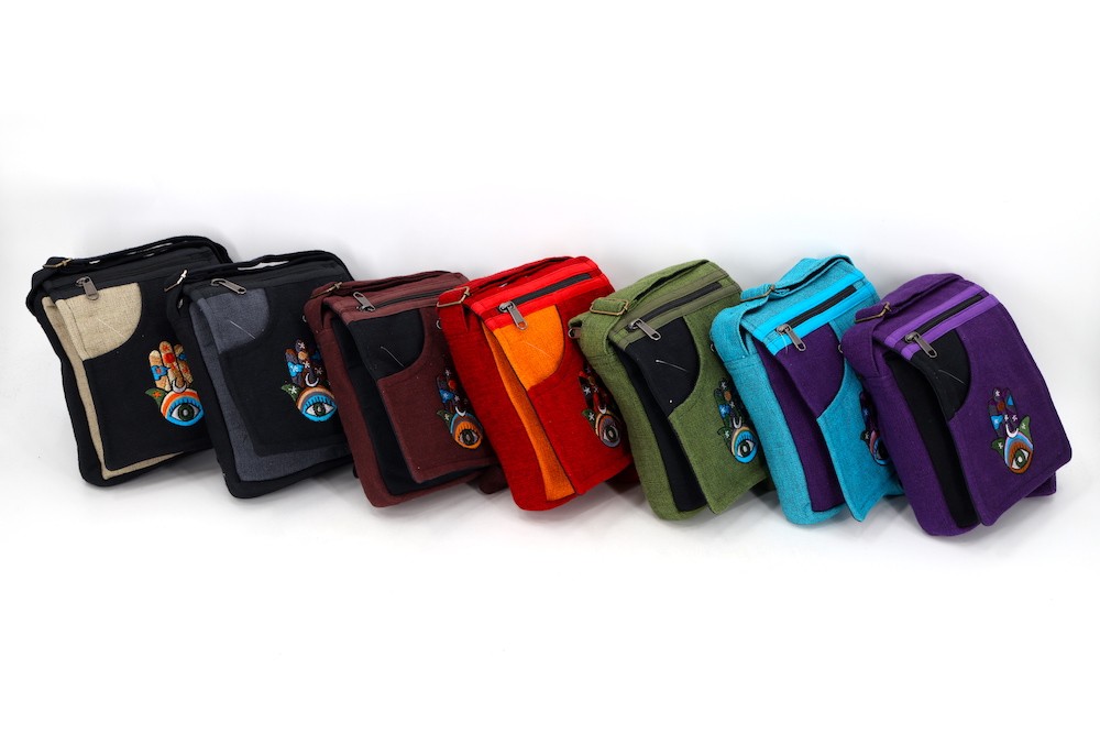 The beautiful Hand-Woven Cotton Travel bag is hand made in Nepal with pure 100% organic Himalaya Cotton. This modern Mushroom Embroidery Cotton passport bag is supremely versatile and fashionable. This bag features are it has two compartments with zippers and it has adjustable strap with outside two pockets in the front and in the main pocket above with a zipper. It is a fair trade made product.