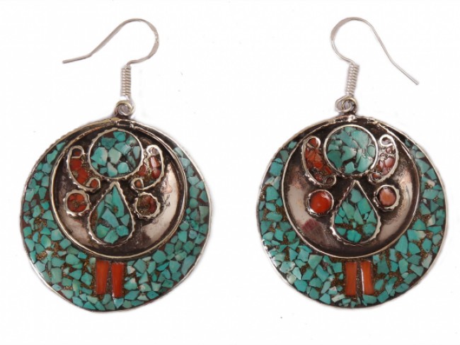 The authentic and beautiful handmade German silver earring mixed with turquoise polished stone and garnet polished stone. These earrings are both whimsical and fashionable also these earrings are authentic reflection of the ancient cultures of Nepal. From simple, classic styles to unique cocktail earrings and these styles of earring fit for any occasion. These earrings are crafted by using only simple hand tools and perfected silver pieces inset with quality gemstones. These earring unique and exotic design makes you the highlight of any crowd.