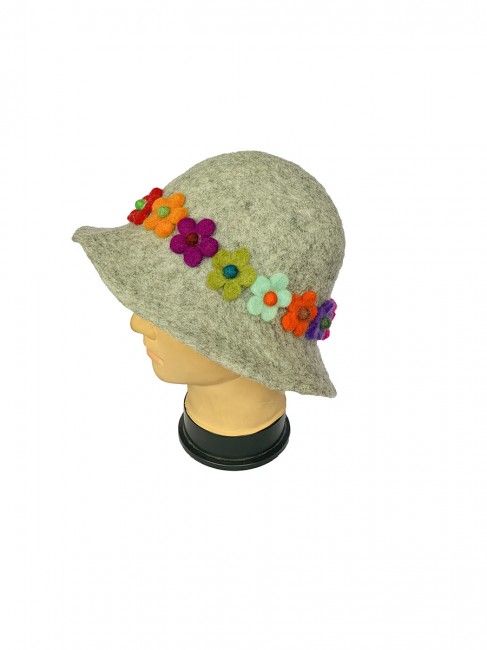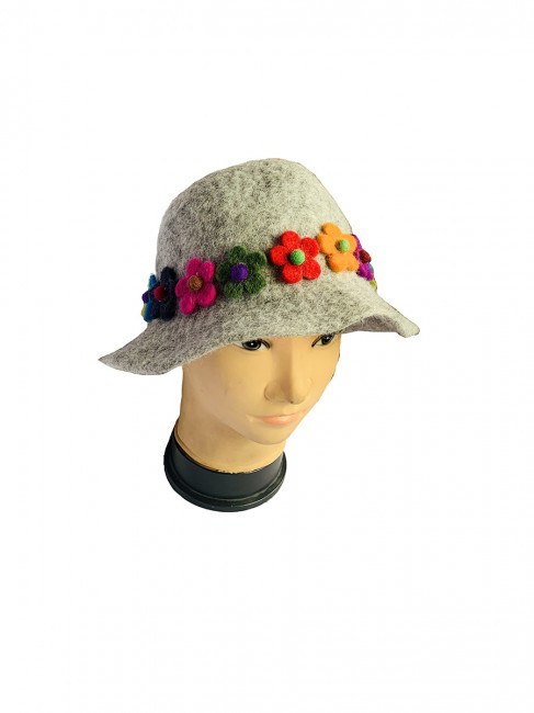 The beautiful Women's hat is unique in many ways. First, it is hand felted by the local Nepalese women with dedication and lots of love at our associate felt production house in Kathmandu valley. Secondly, it has that sweet and beautiful flower which gives it an extra edgy looks.
