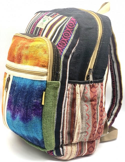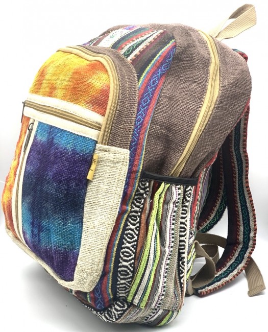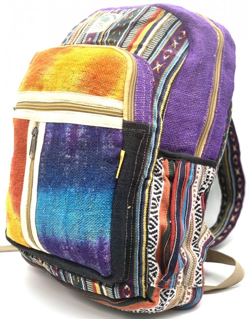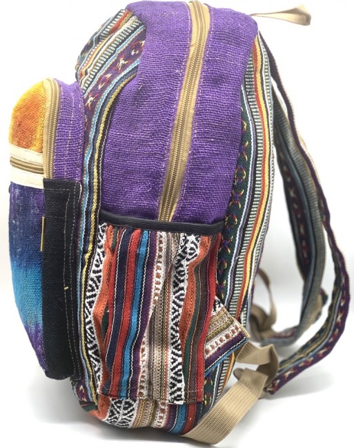 • At Himalaya Handmade we are known for creating the modern Large Hemp backpacks that are now available in profusion of design and colors. Our Large backpack with multicolor Aztec pattern is made from eco-friendly natural hand-woven hemp and cotton fabric and it is beautifully handcrafted in Nepal, they are high quality and this backpack has everything you need. You will not find higher quality anywhere else. All of our bags are sourced from the mountainous regions of Nepal and are all 100% Handmade. This backpack features are it has a unique multi colored pocket. Handcrafted this Backpack Includes, laptop compartment – fits up to 15 inch, 4 separate zippered compartments with 2 pockets, 2 water bottle holders, extremely strong construction, strong original two metal zippers on main compartment, soft padded straps and made from 100% Hemp, the entire bag is extremely strong but also breathable. Color of these bag will not be exact because arrangement of the pattern and these bags are handmade so in color can be slightly different. Pictures color are just example. Every bag is handmade and therefore unique.