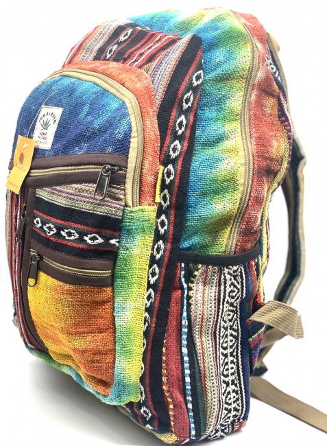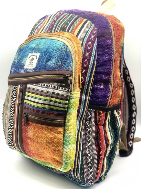 • At Himalaya Handmade we are known for creating the modern Large Hemp backpacks that are now available in profusion of design and colors. Our Large backpack with multicolor Aztec pattern is made from eco-friendly natural hand-woven hemp and cotton fabric and it is beautifully handcrafted in Nepal, they are high quality and this backpack has everything you need. You will not find higher quality anywhere else. All of our bags are sourced from the mountainous regions of Nepal and are all 100% Handmade. This backpack features are it has a unique multi colored pocket. Handcrafted this Backpack Includes, laptop compartment – fits up to 15 inch, 4 separate zippered compartments with 2 pockets, 2 water bottle holders, extremely strong construction, strong original two metal zippers on main compartment, soft padded straps and made from 100% Hemp, the entire bag is extremely strong but also breathable. Color of these bag will not be exact because arrangement of the pattern and these bags are handmade so in color can be slightly different. Pictures color are just example. Every bag is handmade and therefore unique.