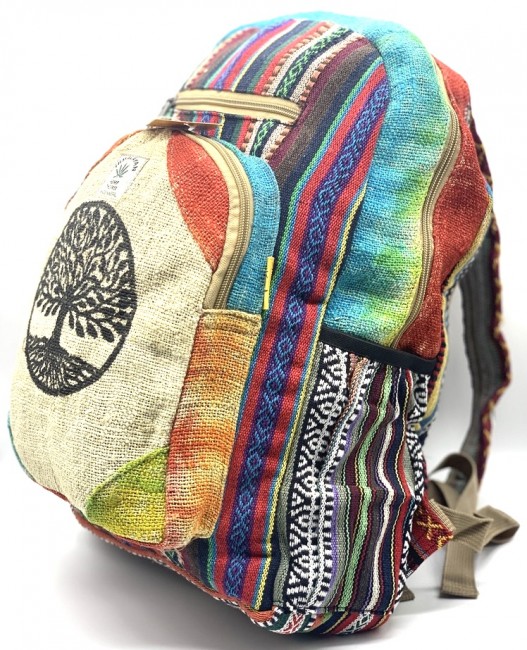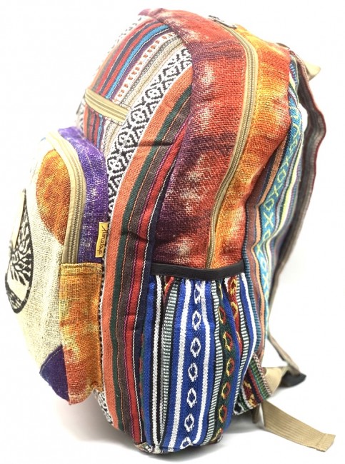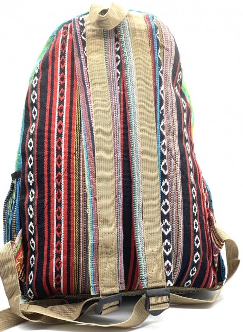 At Himalaya Handmade we are known for creating the modern Large Hemp backpacks that are now available in profusion of design and colors. Our Large backpack with multicolor Aztec pattern is made from eco-friendly natural hand-woven hemp and cotton fabric and it is beautifully handcrafted in Nepal, they are high quality and this backpack has everything you need. You will not find higher quality anywhere else. All of our bags are sourced from the mountainous regions of Nepal and are all 100% Handmade. This backpack features are it has a unique multi colored pocket. Handcrafted this Backpack Includes, laptop compartment – fits up to 15 inch, 4 separate zippered compartments with 2 pockets, 2 water bottle holders, extremely strong construction, strong original two metal zippers on main compartment, soft padded straps and made from 100% Hemp, the entire bag is extremely strong but also breathable. Color of these bag will not be exact because arrangement of the pattern and these bags are handmade so in color can be slightly different. Pictures color are just example. Every bag is handmade and therefore unique.