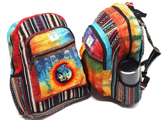 - At Himalaya Handmade we are known for creating the modern Hemp backpacks that are now available in profusion of design and colors. Our Mini backpack with multicolor Aztec pattern is made from eco-friendly natural hand-woven hemp and cotton fabric and it is beautifully handcrafted in Nepal, they are high quality and this backpack has everything you need. You will not find higher quality anywhere else. All of our bags are sourced from the mountainous regions of Nepal and are all 100% Handmade. This backpack features are it has a unique multi colored pocket. Handcrafted this Backpack Includes, laptop compartment – fits up to 13 inch, 4 separate zippered compartments with 2 pockets, 2 water bottle holders, extremely strong construction, strong original two metal zippers on main compartment, soft padded straps and made from 100% Hemp, the entire bag is extremely strong but also breathable. Color of these bag will not be exact because arrangement of the pattern and these bags are handmade so in color can be slightly different. Pictures color are just example. Every bag is handmade and therefore unique.