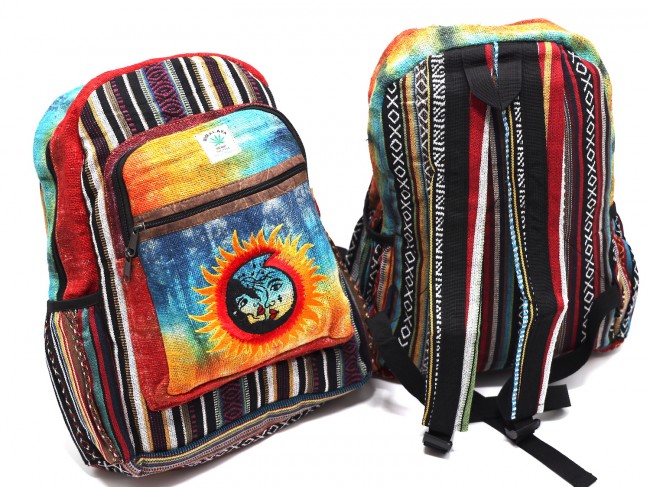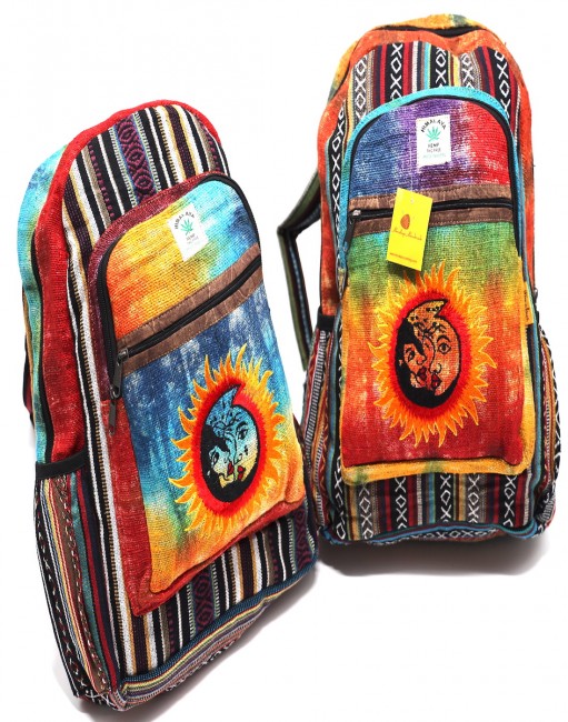 Unique Design Sun Moon Hand Embroidery with double Stitched highest quality Himalaya Hemp and double zipper with fully adjustable shoulder straps one size fits all.