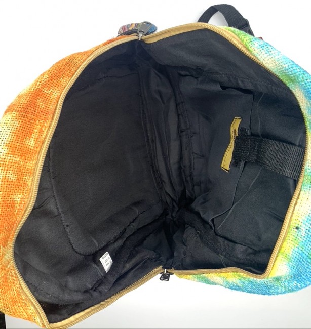 100% Natural THC Free Himalaya Hemp Fabric stitched by talented artisans in Himalaya Range of Nepal. Support underprivileged Nepalese communities with your purchase. Hand wash or Machine wash in cold water. Because the bag is tye dye and handmade the designs and the colorways of the bag wil vary fro each other